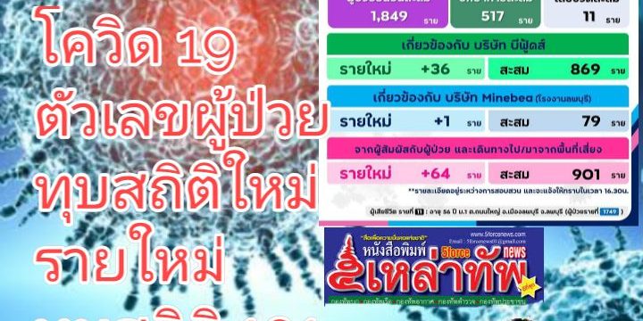 บริษัท บริษัท เอ็นเอ็มบี-มินีแบ ไทย จำกัด โรงงานลพบุรี ยอดสะสม 79 ราย และผู้สัมผัสพื้นที่เสี่ยงสูงวันนี้เพิ่มเป็น 64 ราย ยอดสะสม 901 ราย