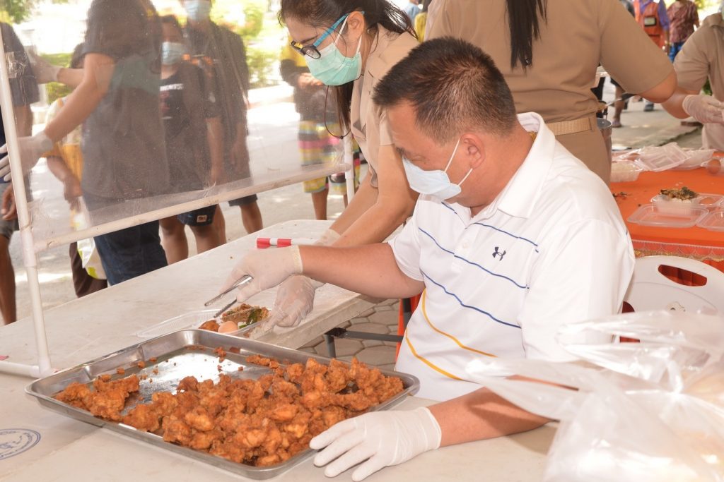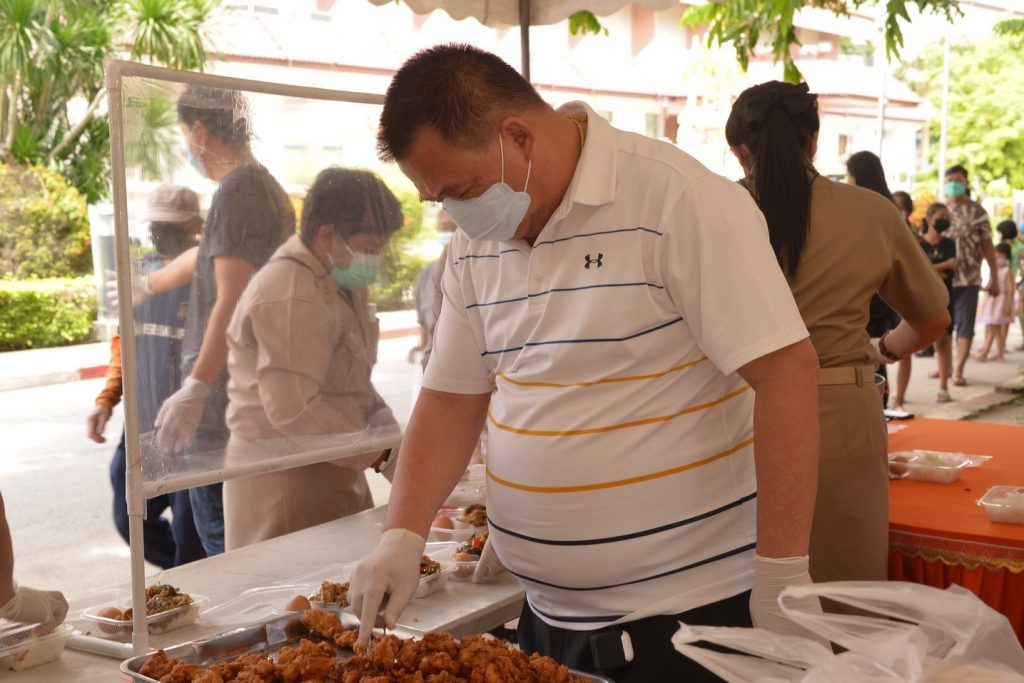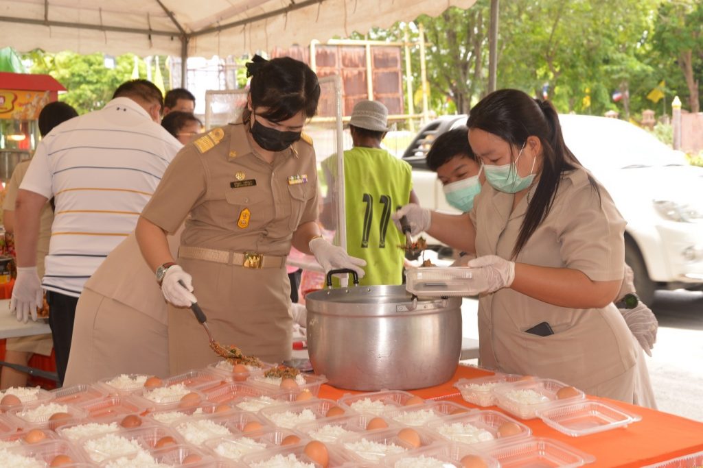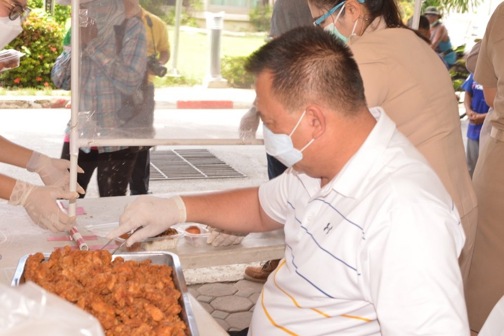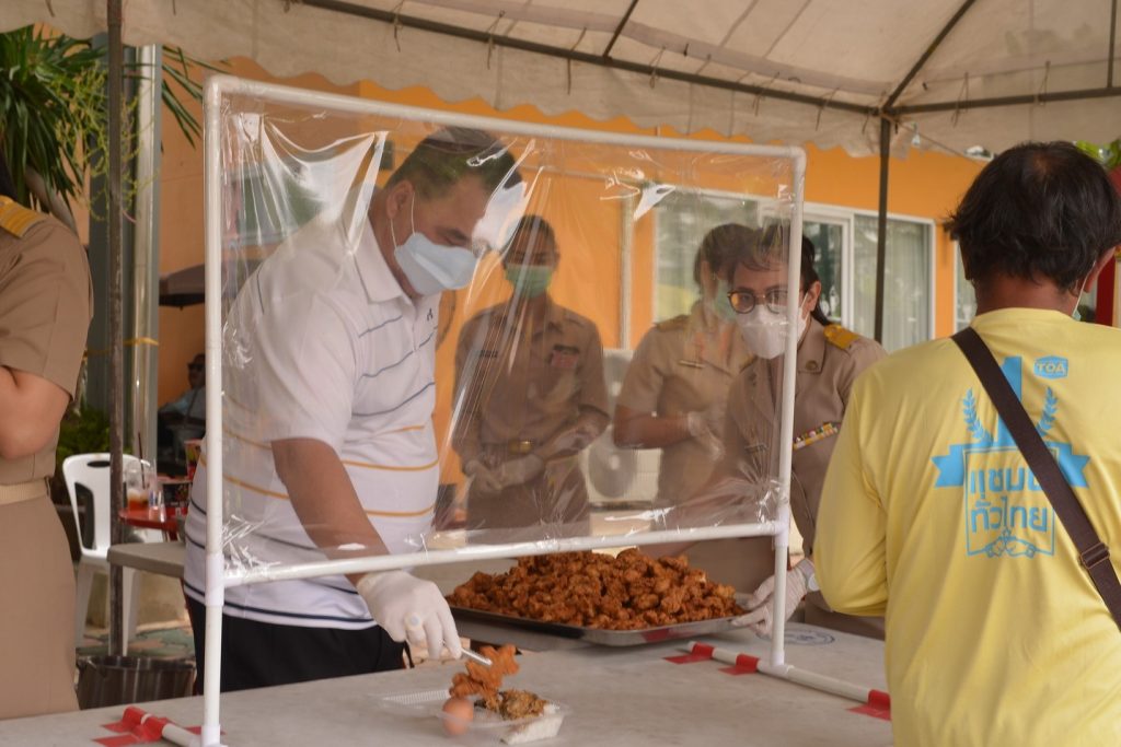 นายจําเริญ สละชีพ ลงมือทำอาหารเอง เมนูไก่ทอด ล่าข้าวสวยร้อนๆ ใส่ในกล่องข้าวจำเริญปันสุข แจกในโรงทานจำเริญปันสุขปันน้ำใจชาวลพบุรี ช่วงผลกระทบ covid 19 เพื่อช่วยเหลือแบ่งปันและเบาภาระประชาชนลดค่าใช้จ่ายผู้ได้รับผลกระทบจากสถานการณ์การเผยแพร่ของไวรัสโควิค 19 ในครั้งนี้