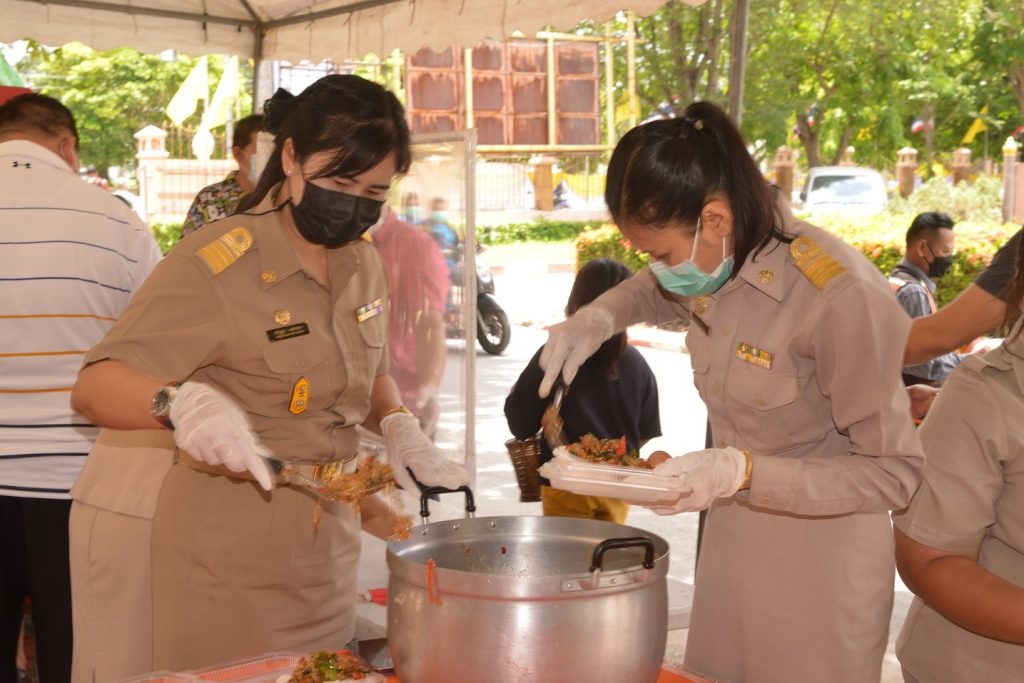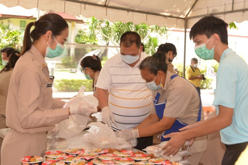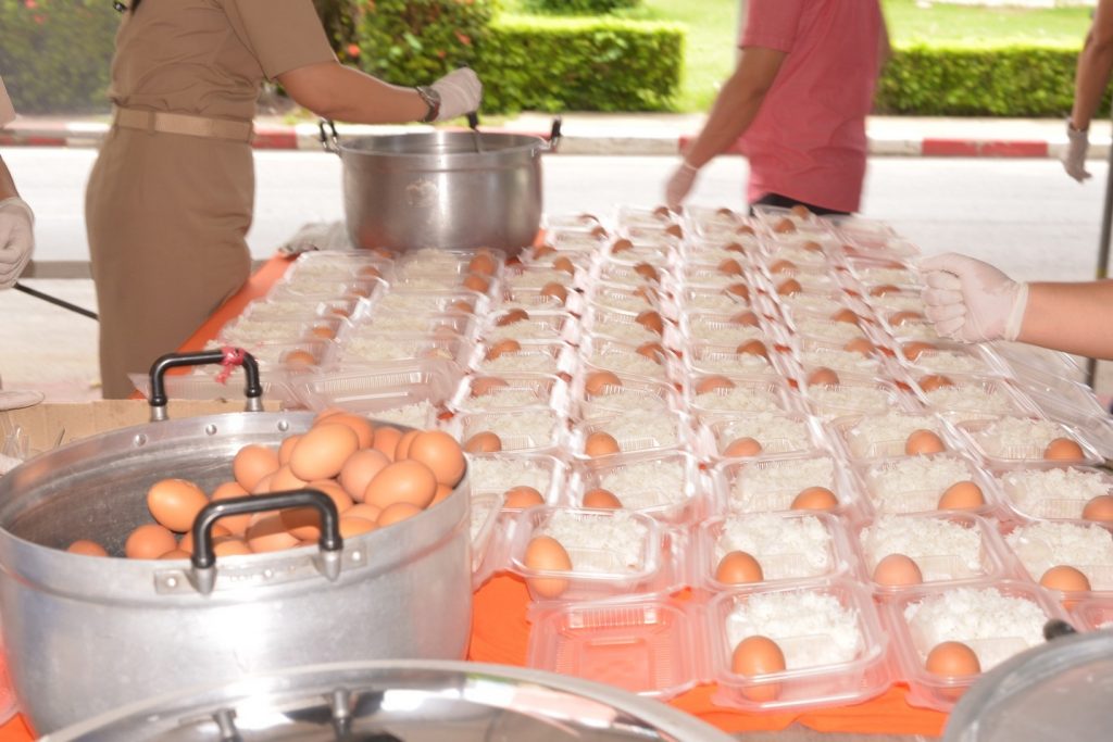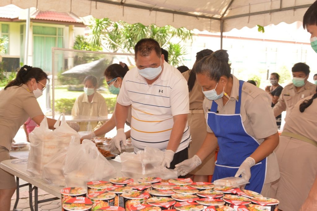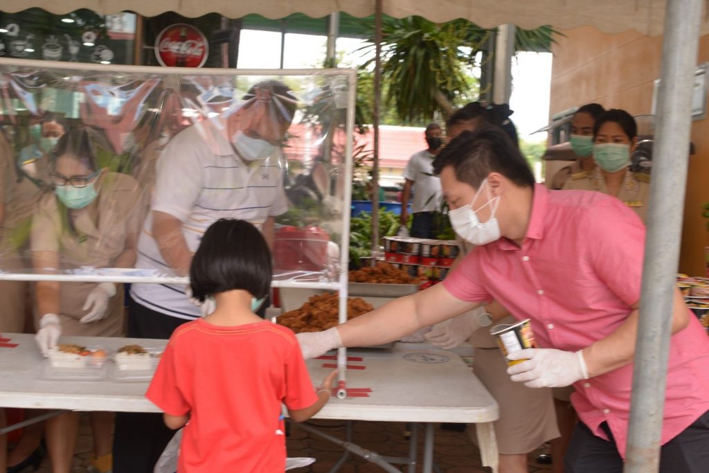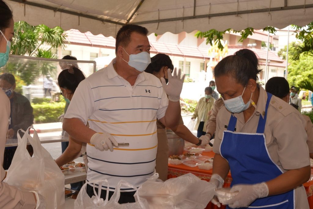 นายจําเริญ สละชีพ ลงมือทำอาหารเอง เมนูไก่ทอด ล่าข้าวสวยร้อนๆ ใส่ในกล่องข้าวจำเริญปันสุข แจกในโรงทานจำเริญปันสุขปันน้ำใจชาวลพบุรี ช่วงผลกระทบ covid 19 เพื่อช่วยเหลือแบ่งปันและเบาภาระประชาชนลดค่าใช้จ่ายผู้ได้รับผลกระทบจากสถานการณ์การเผยแพร่ของไวรัสโควิค 19 ในครั้งนี้