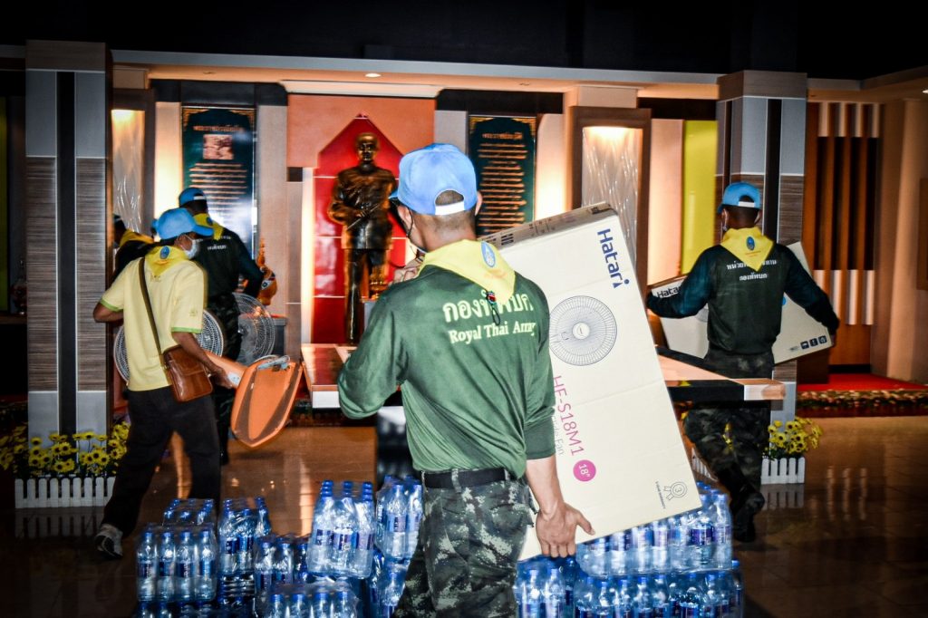 __ เมื่อวันที่ 12 กรกฎาคม 2564 พันเอก ณรงค์ วิชญาณวรวุฒิ ผู้บังคับกรมทหารราบที่ 8 ค่ายสีหราชเดโชไชย ต.ศิลา อ.เมือง จ.ขอนแก่น สนองตอบนโยบาย ผู้บัญชาการทหารบก (ผบ.ทบ.) ในการดูแลพี่น้องประชาชน สั่งการให้หน่วยรองในพื้นที่จัดกำลังพล พร้อมยานพาหนะสนับสนุนส่วนราชการในการจัดตั้งโรงพยาบาลสนามเพื่อประชาชน เพื่อเตรียมการรองรับผู้ป่วยติดเชื้อไวรัส Covid – 19 อีกทั้งเป็นการช่วยลดภาระงานด้านการรักษาพยาบาลของหน่วยงานสาธารณสุข
