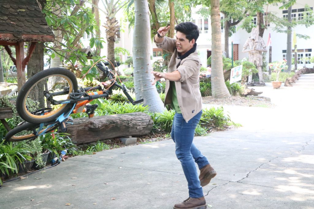 เมื่อทุกอย่างพร้อม ผู้กำกับฯ ก็สั่งแอ็คชั่น โดยเปิดฉากที่ ทานตะวัน เริ่มเล่นบู๊กับพวกสมุน หลังจากได้ภาพสมใจ ก็สั่งให้ วีรุทธ์ ขี่จักรยานเข้าฉาก พร้อมเริ่มคิวบู๊อย่างเมามันส์