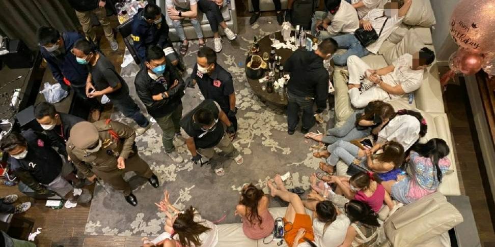 เมื่อเวลาประมาณ 01.00 น. (วันที่ 16 กรกฎาคม ) เจ้าหน้าที่ตำรวจ สน.ทองหล่อ เข้าตรวจสอบ ห้องพัก โรงแรมแห่งหนึ่ง ภายในซอยสุขุมวิท 31 แขวงคลองตันเหนือ เขตวัฒนา กรุงเทพฯ หลังได้รับแจ้ง ว่ามีการมั่วสุมกินเลี้ยงร่วมตัวกันหลายคนและเปิดเพลงส่งเสียงดัง เมื่อไปถึงห้องพักพบว่าได้มีเสียงเพลงและเสียงพูดคุยกันตามที่ได้รับแจ้งจริง เข้าตรวจสอบด้านในพบกลุ่มคนนั่งดื่มสุรา และเปิดเพลงส่งเสียงดัง รวม 21 คน โดยมีนายปฏิมา คำสุข รับว่าเป็นผู้เปิดห้องพักดังกล่าว ภายในห้องเจ้าหน้าที่พบขวดสุรา เค้กวันเกิด อุปกรณ์สำหรับการจัดงานเลี้ยงสังสรรค์ เจ้าหน้าที่ตำรวจจึงได้แจ้งข้อหาทั้ง 21 คน ในความผิดฐาน“ร่วมกันชุมนุม ทำกิจกรรม หรือ มั่วสุมกัน ณ ที่ใดใด ในสถานที่แออัดหรือ กระทำการดังกล่าว อันเป็นการ ยุยง ให้เกิด ความไม่สงบเรียบร้อย หรือในลักษณะที่เสี่ยงต่อการแพร่เชื้อโรค, ร่วมกันฝ่าฝืนข้อกำหนดห้ามออกนอกเคหสถานตามเวลาที่กำหนด อันเป็นการฝ่าฝืน พ.ร.ก.ฉุกเฉินฯ และ กระทำการหรือดำเนินการใดใดซึ่งอาจก่อสภาวะที่ไม่ถูกสุขลักษณะซึ่งอาจเป็นเหตุให้โรคติดต่ออันตรายหรือโรคแพร่ระบาดออกไป ฝ่าฝืนหรือไม่ปฏิบัติตามคำสั่ง ของ เจ้าพนักงานควบคุมโรคติดต่อ ตาม พ.ร.บ.โรคติดต่อ พ.ศ.2558” และได้ควบคุมตัวมาที่ สน.ทองหล่อ เพื่อตรวจปัสสาวะเบื้องต้น โดยพบสารเสพติด เมทแอมเฟตามีน ในร่างกายของผู้ถูกจับ 8 คน และ เคตามีน ในร่างกายของผู้ถูกจับ อีก 6 คนและจากการตรวจค้นตัวนายปฏิมา (ผู้เปิดห้องพัก) พบเคตามีนไว้ในครอบครองจำนวน 4 ถุง จึงได้แจ้งข้อหาเกี่ยวกับเสพยาเสพติดเพิ่มเติม พร้อมดำเนินคดีตามกฎหมายทุกราย