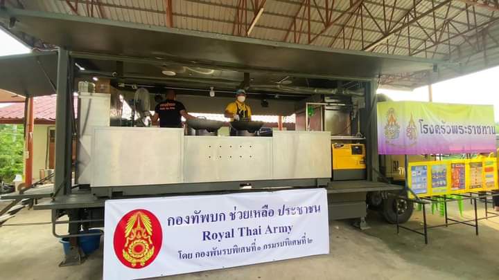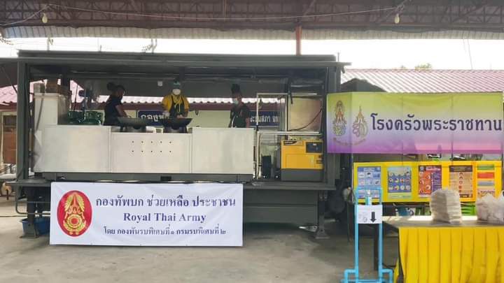 กรมรบพิเศษที่ 2 หน่วยบัญชาการสงครามพิเศษ จัดรถครัวสนามเคลื่อนที่ พร้อมกำลังพลจิตอาสา พระราชทาน “เราทำความดี ด้วยหัวใจ” จาก กองพันรบพิเศษที่ 1 ค่ายเอราวัณ ตำบลเขาสามยอด อำเภอเมือง จังหวัดลพบุรี ร่วมกับ เทศบาลตำบลพัฒนานิคม เทศบาลตำบลเขาพระยาเดินธง และ องค์การบริหารส่วนตำบลโคกสลุง จัดตั้งโรงครัวพระราชทาน “รวมพลัง ปักหลัก สู้โควิด” เพื่อดำเนินการประกอบอาหารปรุงสุก วันละ 3 มื้อ เป็นเวลา 5 วัน เพื่อแจกจ่ายให้กับผู้มีความเสี่ยงสูงที่ต้องกักตัวในบ้าน จากคลัสเตอร์ โรงงานแปรูเนื้อไก่ บริษัท บีฟู้ดส์ โปรดักส์ อินเตอร์เนชั่นแนล จำกัด ต.ช่องสาลิกา อ.พัฒนานิคม จ.ลพบุรี ตามคำสั่งของคณะกรรมการควบคุมโรคจังหวัดลพบุรี
