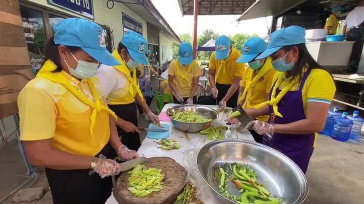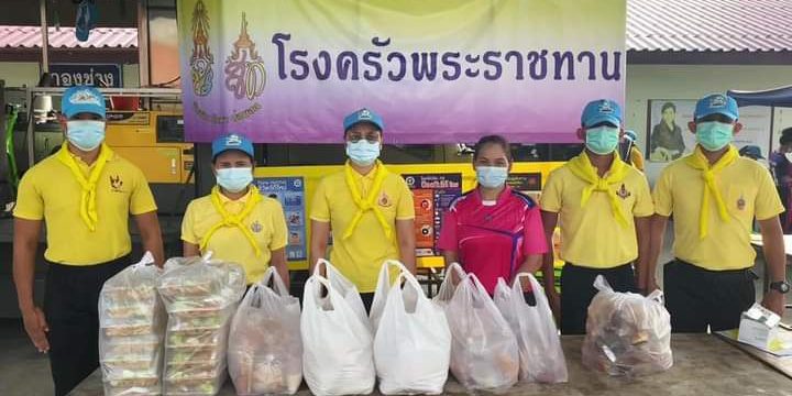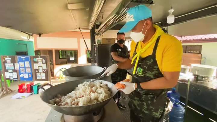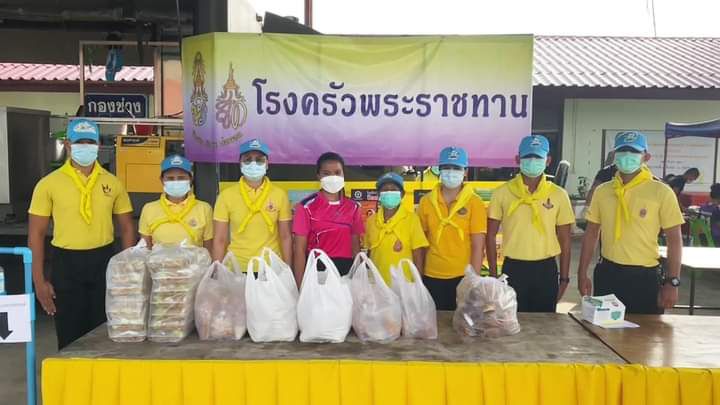 โดยดำเนินการประกอบอาหารปรุงสุกบรรจุกล่องพร้อมรับประทาน วันละ 3 มื้อ มื้อละ 400 กล่อง เพื่อมอบให้กับ อสม. และผู้นำท้องถิ่น จัดชุดเคลื่อนที่เร็ว ไปส่งมอบประชาชนกลุ่มเสี่ยงบริเวณหน้าบ้าน จำนวนกว่า 200 ครอบครัว รวมถึงผู้ติดเชื้อในกลุ่มสีเขียวที่ไม่แสดงอาการและเข้ารับการรักษาและกักตัว ณ ศูนย์พักค่อยก่อนส่งต่อโรงพยาบาล ขององค์การบริหารส่วนตำบลโคกสลุง อีกจำนวน 42 ราย
