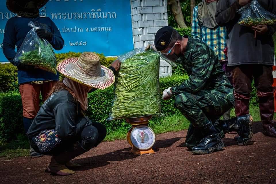 ที่ค่ายพระยอดเมืองขวาง ตำบลกุรุคุ อำเภอเมือง จังหวัดนครพนม ผู้สื่อข่าวรายงานว่า พันโท ศรณณัฐ นวลมณี ผู้บังคับกองพันทหารราบที่ 3 กรมทหารราบที่ 3 (ผบ.ร.3 พัน.3) มีความเป็นห่วงชาวเกษตรกรนครพนม จึงได้จัดกำลังพลลงพื้นที่เข้าช่วยเหลือประชาชนรับซื้อผักจากเกษตรกร ที่ได้รับผลกระทบจากสถานการณ์การแพร่ระบาดของไวรัส COVID-19 ทำให้ราคาตกต่ำ ซึ่งได้บรรเทาความเดือดร้อนให้กับเกษตรกรภายใต้โครงการของกองทัพบกเข้าช่วยเหลือพี่น้องเกษตรทั่วประเทศที่ประสบปัญหาผลผลิตล้นตลาด กองทัพบกช่วยแบ่งเบาปัญหา ตามโครงการ “น้องทหารอิ่มท้อง พี่น้องเกษตรกรอิ่มใจ” จากปัญหาความเดือดร้อนของเกษตรกรในห้วงนี้เป็นช่วงเก็บผลผลิตแต่จากสถานการณ์การแพร่ระบาดของไวรัส COVID-19 ส่งผลกระทบกับเกษตรกรเป็นวงกว้าง จึงได้ประสานกับ นายสุรศักดิ์ เหิมหา เจ้าหน้าที่โครงการฟาร์มตัวอย่างหนองปลาค้อเฒ่า บ.โพนทา ต.กุตาไก้ อ.ปลาปลา จ.นครพนม เพื่อทำการรับซื้อ ผักบุ้ง 50 กิโลกรัม,พริก 50 กิโลกรัม และใบกระเพรา 500 บาท รวมถึงพืชผักสวนครัว นำไปสนับสนุนเป็นเมนูอาหารเสริม ให้กำลังพลทหารในหน่วยได้รับประทานผักที่สดสะอาด ปลอดภัย รสชาติอร่อย ทั้งยังได้ช่วยเหลือโครงการฟาร์มตัวอย่างหนองปลาค้อเฒ่า เป็นการเพิ่มช่องทางการตลาด รวมถึงกระจายผลผลิตออกสู่ตลาด แก้ปัญหาการขายผลผลิตตกต่ำ และให้สามารถขายหมดได้ทันฤดูกาล ป้องกันความเสียหายจากภัยธรรมชาติ เนื่องจากช่วงนี้เสี่ยงต่อการเกิดพายุฤดูร้อน “เพราะทหารเป็นที่พึ่งของประชาชนในทุกโอกาส” ในการดำเนินกิจกรรมในครั้งนี้ยังคงอยู่ภายใต้มาตรการป้องกันการแพร่ระบาดของโรคติดเชื้อไวรัสโคโรนา 2019 (COVID-19) อย่างเคร่งครัด