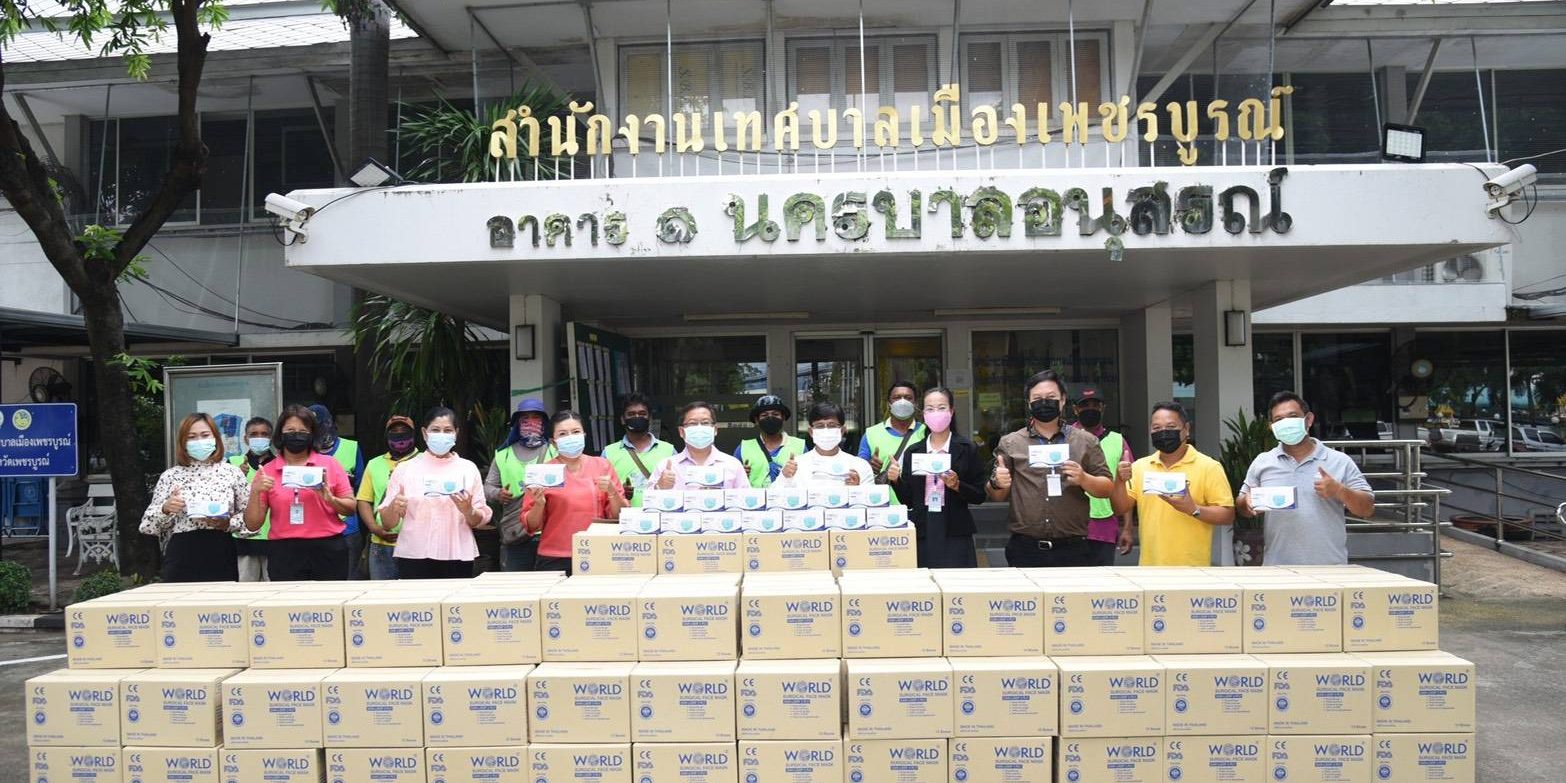 เมื่อวันที่ 20 กรกฏาคม 2564 : บริษัท เวิร์ลคอร์ปอเรชั่น (ประเทศไทย) จำกัด เป็นบริษัทผลิตและจัดจำหน่ายอุปกรณ์ทางการแพทย์ ได้ส่งผู้แทนเดินทางไปมอบ หน้ากากอนามัยจำนวน 100,000 ชิ้น ให้กับทาง เทศบาลเมืองเพชรบูรณ์ โดยมี นายตรียชญ์สุธา วิชัยธนพัฒน์ รองนายกเทศมนตรีเมืองเพชรบูรณ์ ให้เกียรติเป็นผู้รับมอบ