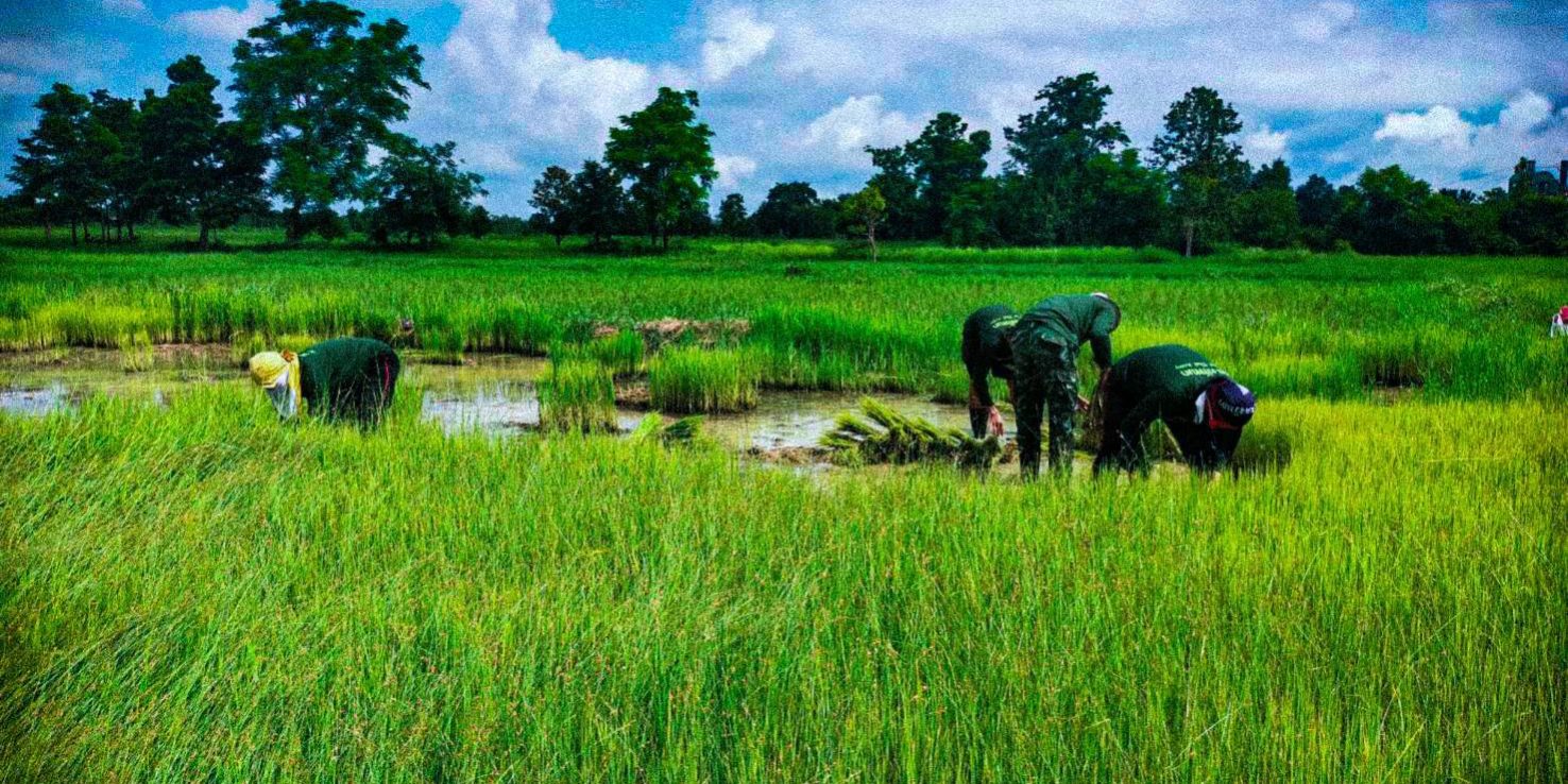 _วันที่ 21 ก.ย. 2564 ที่ค่ายพระยอดเมืองขวาง ต.กุรุคุ อ.เมือง จ.นครพนม ผู้สื่อข่าวรายงานว่า ในประเทศไทย ผู้ประกอบอาชีพปลูกข้าวจำนวนมาก ชาวนาในประเทศไทยนับว่าเป็นคนกลุ่มใหญ่ที่สุด เพราะข้าวเป็นอาหารหลักของคนไทย ที่สืบทอดกันมายังอนุชนรุ่นหลัง การทำนาของชาวนา จะเริ่มทำงานตั้งแต่เช้าจรดค่ำตลอดทั้งปี ดังนั้นกำลังพลกองพันทหารราบที่ 3 กรมทหารราบที่ 3 จึงดำเนินการสืบสาน รักษา ต่อยอดการทำนาภายในโครงการศูนย์การเรียนรู้เกษตรทฤษฎีใหม่ “โคก หนอง นา” โมเดล ในพื้นที่รับผิดชอบของหน่วย เพื่อเป็นแหล่งความรู้ด้านวิชาการเกษตรสมัยใหม่ ให้สามารถนำไปปรับใช้ในชีวิตได้อย่างมีประสิทธิผล ให้กำลังพลนำความรู้ด้านการเกษตรนำไปประยุกต์ใช้และปฏิบัติซึ่งไม่ซับซ้อน ประหยัด เหมาะสมกับสภาพสังคมภายในค่ายฯ เพื่อให้สามารถพึ่งพาตนเองได้ จึงได้นำ “ศาสตร์พระราชาสู่การพัฒนาอย่างยั่งยืน” นำองค์ความรู้มาปฏิบัติตามหลักปรัชญาเศรษฐกิจพอเพียงและเกษตรทฤษฎีใหม่ จะนำไปสู่การพึ่งพาตนเองและการพัฒนาอย่างยั่งยืน ทั้งนี้กองพันทหารราบที่ 3 กรมทหารราบที่ 3 ได้น้อมนำแนวทางตามพระราชดำริมาดำเนินการของหน่วยโดยมีวัตถุประสงค์ เพื่อให้กำลังพลและครอบครัว ศึกษาและเรียนรู้ในศูนย์การเรียนรู้ดังกล่าว เพื่อนำไปประยุกต์ใช้ให้เกิดประสิทธิผลต่อไป การจัดการพื้นที่ ซึ่งเหมาะกับพื้นที่การเกษตร ที่เป็นการผสมผสานเกษตรทฤษฎีใหม่เข้ากับภูมิปัญญาพื้นบ้านที่อยู่อย่างสอดคล้องกับธรรมชาติในพื้นที่ เป็นแนวทางการทำเกษตรอินทรีย์และการสร้างชีวิตที่ยั่งยืนต่อไป