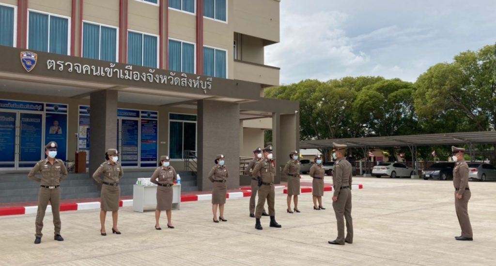 วันที่ 21 ก.ค.64 เวลา 14.00 น. พล.ต.ท.สมพงษ์ ชิงดวง ผบช.สตม.เดินทางตรวจเยี่ยม ติดตามความคืบหน้า การก่อสร้างอาคารที่ทำการ ตม.จ.สิงห์บุรี ต่อมาเวลา 16.00 น.พล.ต.ท.สมพงษ์ฯ เดินทางมาตรวจเยี่ยมด่านตรวจแยกต่างระดับสิงห์เหนือ ต.บางมัญ อ.เมือง จ.สิงห์บุรี พบ พล.ต.ต.วีรวิชญ์ บัวประเสริฐยิ่ง ผบก.ภ.จ.สิงห์บุรี,พ.ต.อ.สุรพจน์ รอดบำรุง รอง ผบก.ภ.จ.สิงห์บุรี,พ.ต.อ.เมธาพงษ์ บุญศรี ผกก.สภ.เมืองสิงห์บุรี,พ.ต.ท.วิษณุ พงศ์พันธุ์อนุสร สว.ตม.จ.สิงห์บุรี พร้อมทั้งเจ้าหน้าที่ตำรวจ ผู้ปฏิบัติหน้าที่ประจำจุด และเจ้าหน้าที่จากหน่วยงานอื่น ได้แก่ เจ้าหน้าที่ฝ่ายปกครอง เจ้าหน้าที่กระทรวงสาธารณสุข และเจ้าหน้าที่กรมการขนส่งฯ ปฏิบัติหน้าที่ร่วมบริเวณจุดตรวจฯ