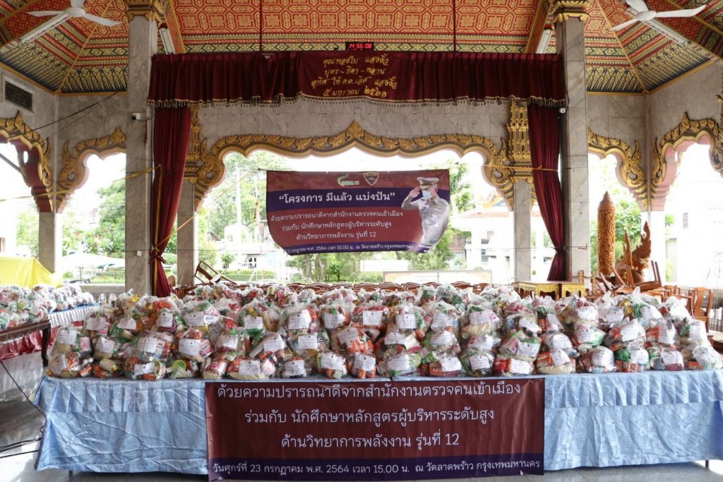 วันมี่ 23 ก.ค.64 เวลา 15.00 น.: พล.ต.ท.สมพงษ์ ชิงดวง ผบช.สตม. พร้อมด้วย คุณสุขุมาล ชิงดวง ประธานชมรมแม่บ้านตำรวจ สตม.,พล.ต.ต.พันธนะ นุชนารถ ผบก.สส.สตม.,นายจุมพฎ สายหยุด ผู้แทนนักศึกษาหลักสูตรคณะผู้บริหารระดับสูงด้านวิทยาการพลังงาน รุ่นที่ 12 (วพน.12) และชมรมแม่บ้านตำรวจ สตม. เดินทางไปแจกถุงยังชีพ ให้กับประชาชนที่ได้รับผลกระทบจากการแพร่ระบาดของโรคโควิด-19 โดย ผบช.สตม.และคณะ ได้แจกถุงยังชีพในชุมชน ย่านลาดพร้าว 2 จุด คือ