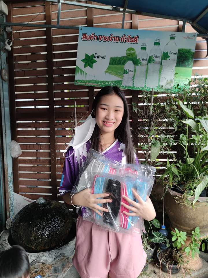 น้องเขาก็ใจบุญ หักค่าตัว หักที่น้องเขาไปแสดง MV หรือออกงานโชว์ตัวหรือออกงานอีเว้นท์ ส่วนหนึ่งน้องเขาเอาเงิน มา ซื้อ น้ำดื่มและหน้ากากอนามัยแจกให้ประชาชนชาวนครปฐม เพราะสถานการณ์ covid 19 มันแพร่ระบาดไปทุกจังหวัด น้องเขาก็เป็นห่วงคนไทยเหมือนกัน