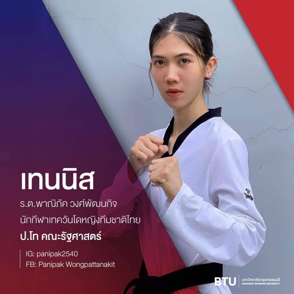 ล่าสุดชื่อเสียงทางด้านกีฬาของ “มหาวิทยาลัยกรุงเทพธนบุรี” ได้กระหึ่มขึ้นอีกครั้ง เมื่อ “เทนนิส-ร.ต.พาณิภัค วงศ์พัฒนกิจ” วัย 23 ปี นักกีฬาเทควันโดทีมชาติไทย ในฐานะศิษย์ปัจจุบัน ปริญญาโท คณะรัฐศาสตร์ เปิดประวัติศาสตร์หน้าใหม่ให้กับวงการกีฬาประเทศไทย ด้วยการคว้า “เหรียญทอง” จากกีฬาโอลิมปิก 2020 ณ กรุงโตเกียว ประเทศญี่ปุ่น (เลื่อนมาจากปีที่แล้วเนื่องจากสถานการณ์การแพร่ระบาดโควิด-19) ให้กับกองทัพนักกีฬาไทยได้เป็นคนแรกและเหรียญแรก เรียกได้ว่าในวิกฤตโควิด-19 ยังมีโอกาสให้คนไทยมีความสุขใจ นับเป็นเหรียญที่สองของเธอ หลังจากเคยคว้าเหรียญทองแดงรุ่นเดียวกัน ในกีฬาโอลิมปิก 2016 ณ เมืองริโอ เดอ จาเนโร ประเทศบราซิล โดยความสำเร็จในครั้งนี้มาจากการคว้าชัยชนะอย่างน่าตื่นเต้นจากนักกีฬาแดนกระทิงดุอย่างประเทศสเปน ในการแข่งขันเทควันโด้รุ่น 49 กก.