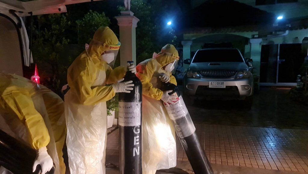 มูลนิธิร่วมกตัญญู จึงส่งชุดปฏิบัติการพิเศษ ปฏิบัติภารกิจส่งต่อลมหายใจให้กับผู้ป่วย นำทีมพร้อมถังและอุปกรณ์อ๊อกซิเจนไปให้การช่วยเหลือ เมื่อเดินทางไปถึง หมาย ทีมพยาบาล เข้าทำการประเมินอาการเบื้องต้น พบว่า มีผู้สูงอายุ 2 รายค่าออกซิเจนต่ำกว่าปกติ จึงทำการติดตั้งถัง และให้ออกซิเจน สักระยะแล้ววัดค่าอีกครั้ง กลับมาปกติ ปลอดภัย