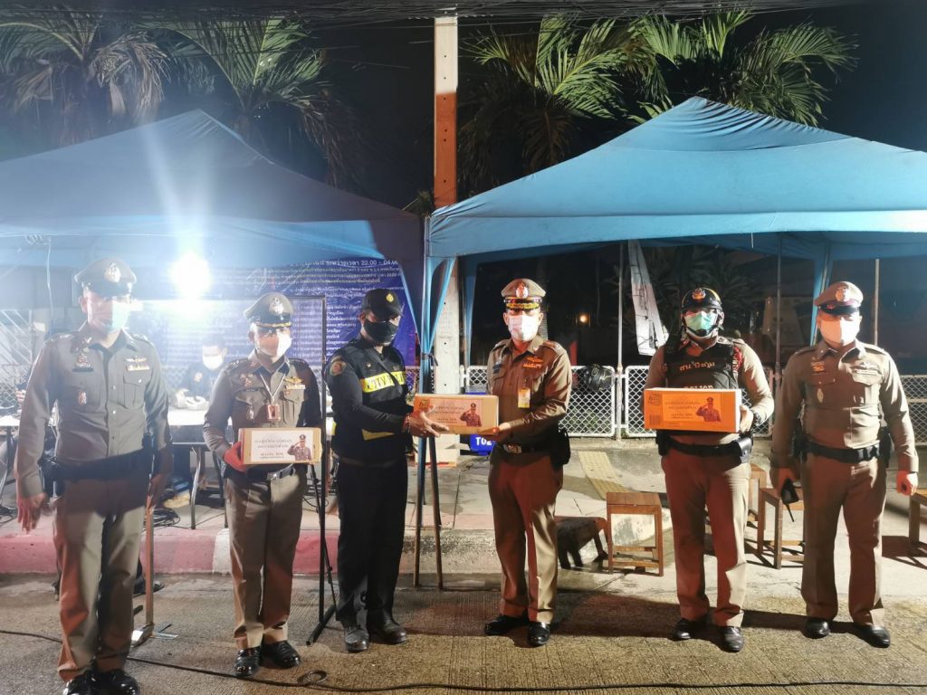 ทั้งนี้ได้มอบสิ่งของบำรุงขวัญ เพื่อเป็นขวัญกำลังใจในการปฎิบัติหน้าที่ พร้อมทั้งได้กำชับเจ้าหน้าที่ตำรวจให้ปฏิบัติตามมาตรฐาน (SOP) ต้องสวมใส่อุปกรณ์ป้องกัน และรักษามาตรการควบคุมโรค และได้ออกตรวจต่อไป
