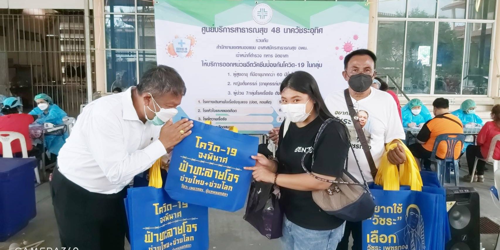 โอกาสนี้ นายวัชระ ได้มอบปัจจัยให้ตัวแทนของศูนย์สาธารณสุข 48 นาควัชระอุทิศ ที่ห้องฉีดวัคซีน เพื่อสนับสนุนซื้ออุปกรณ์ทางการแพทย์เพิ่มเติมและสร้างขวัญกำลังใจให้กับแพทย์ พยาบาล อสม.และผู้นำชุมชนที่อยู่ด่านหน้าที่ทำหน้าที่เสี่ยงอันตรายที่สุดอยู่ทุกวินาทีในขณะนี้