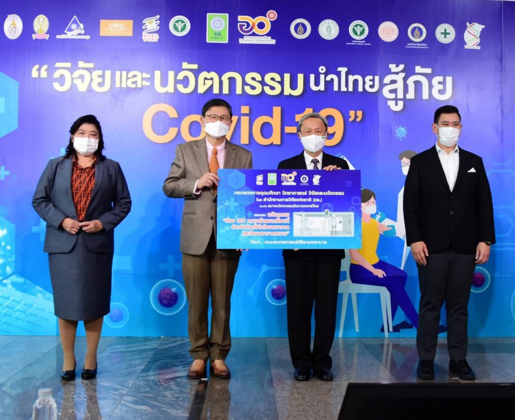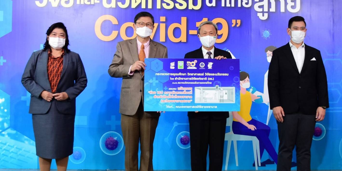 เมื่อเร็วๆ นี้ ศ.(พิเศษ) ดร.เอนก เหล่าธรรมทัศน์ รมว. การอุดมศึกษา วิทยาศาสตร์ วิจัยและนวัตกรรม (อว.) ได้แถลงนโยบายและผลงาน เรื่อง “วิจัยและนวัตกรรมนำไทยสู้ภัย Covid-19” พร้อมทั้งได้มีการส่งมอบนวัตกรรมห้อง ICU ความดันลบเคลื่อนที่ สำหรับติดตั้งในโรงพยาบาลและโรงพยาบาลสนาม ซึ่งเป็นนวัตกรรมที่ใช้ในการสนับสนุนด้านสาธารณสุข ที่ได้สำนักงานการวิจัยแห่งชาติ (วช.) ได้ให้การสนับสนุนทุนวิจัยเพื่อพัฒนานวัตกรรม แก่สมาคมวิศวกรรมชีวการแพทย์ไทย โดยมีสถาบันเทคโนโลยีพระจอมเกล้าเจ้าคุณทหารลาดกระบัง (สจล.) เป็นผู้ดำเนินการ ซึ่งขณะนี้ ได้นำไปติดตั้งที่โรงพยาบาลบุษราคัม,โรงพยาบาลทหารผ่านศึก และโรงพยาบาลเลิดสิน พร้อมกับเตรียมติดตั้งรวมแล้วมากกว่า 20 ห้อง ในเดือนกรกฎาคม-สิงหาคม
