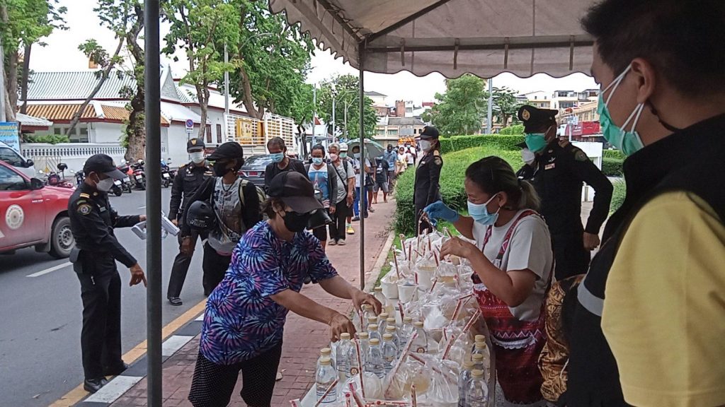 (27ก.ค.64) เวลา 11.30 น. นายสุรเดช อำนวยสาร ผู้อำนวยการเขตพระนคร พร้อมคณะผู้บริหารเขต และเจ้าหน้าที่เทศกิจ ตั้งจุดบริการช่วยเหลือประชาชนที่ได้รับผลกระทบจากสถานการณ์การแพร่ระบาดของโรคโควิด-19 บริเวณสวนหย่อมสิบสามห้าง บางลำภู เพื่อเพิ่มความสะดวกให้กับประชาชนที่ประสงค์จะแจกข้าวหรือมอบสิ่งของช่วยเหลือคนยากไร้ คนไรบ้าน และประชาชนทั่วไปที่ได้รับผลกระทบ ทั้งนี้เพื่อให้ง่ายต่อการจัดระเบียบ ตามมาตรการป้องกันและควบคุมโรคโควิด-19 โดยเบื้องต้นกำหนดให้สามารถแจกได้ใน 2 ช่วงเวลา ได้แก่ 11.30 น. และ 16.30 น. ซึ่งจะมีเจ้าหน้าที่เทศกิจคอยประชาสัมพันธ์ อำนวยความสะดวก และจัดระเบียบให้เป็นไปตามมาตรการควบคุมโรค สำหรับประชาชนที่ประสงค์จะบริจาคอาหารที่บริเวณดังกล่าว สามารถติดต่อได้ที่คุณคณิต ชุมช่วย หัวหน้าฝ่ายเทศกิจ สำนักงานเขตพระนคร โทร. 0894788847