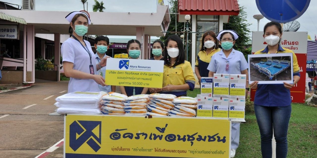 แม้ว่าเหมืองทองของบริษัทฯ ยังคงถูกระงับการดำเนินงาน แต่บริษัทฯยืนยันขอเคียงข้างทุกท่านร่วมฝ่าฟันวิกฤติโควิดครั้งนี้ไปด้วยกัน บริษัทฯขอส่งกำลังใจไปยังบุคลากรทางการแพทย์ที่ปฏิบัติหน้าที่เป็นด่านหน้าในการรักษาพยาบาลผู้ป่วย ด้วยความทุ่มเทเสียสละ ทำงานอย่างหนักเพื่อส่วนรวมในการต่อสู้กับวิกฤติในครั้งนี้ นอกจากบริษัทฯสนับสนุนอุปกรณ์และเวชภัณฑ์ทางการแพทย์ให้กับโรงพยาบาลเนินมะปรางแล้วบริษัทฯได้สนับสนุนน้ำดื่มพร้อมอาหารและเครื่องดื่มให้กับเจ้าหน้าที่ผู้ปฏิบัติงานจุดคัดกรองโควิด-19ในพื้นที่ต.วังโพรง อ.เนินมะปรางอีกด้วย