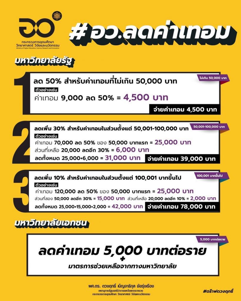 ลดอย่างไร ลดเท่าไหร่ คิดอย่างไร กับส่วนลดค่าเทอมที่กระทรวงการอุดมศึกษาวิทยาศาสตร์วิจัยและนวัตกรรม (อว.) ประกาศออกมาล่าสุด