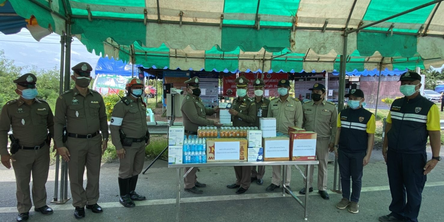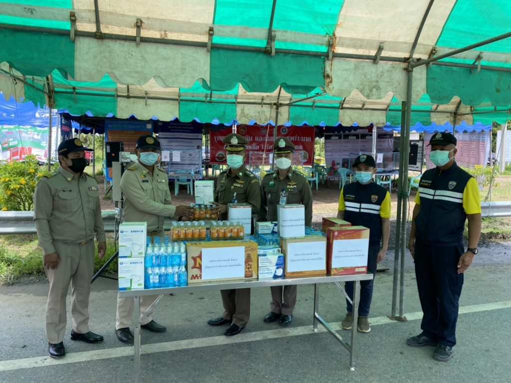 พร้อมกันนี้ได้มอบสิ่งของบำรุงขวัญ อาทิ หน้ากากอนามัย,เจลแอลกอฮอล์ และเครื่องอุปโภค บริโภค ให้แก่เจ้าหน้าที่ เพื่อเป็นขวัญกำลังใจในการปฏิบัติหน้าที่ต่อไป