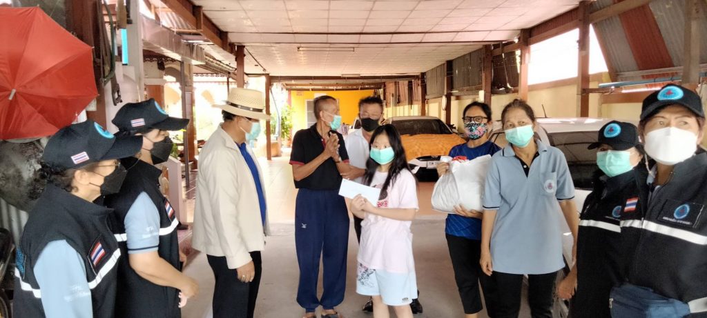 ได้ลงพื้นที่เพื่อมอบถุงยังชีพ (เครื่องอุปโภค บริโภค) พร้อมด้วยหน้ากากอนามัย สเปรย์แอลกอฮอล ให้กับประชาชน ชุนชน 3,4,5 บ้านหลังการไฟฟ้าจังหวัดลพบุรี (เขต เทศบาลเมืองเขาสามยอด) จำนวน 54 ครัวเรือน