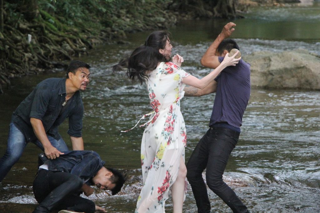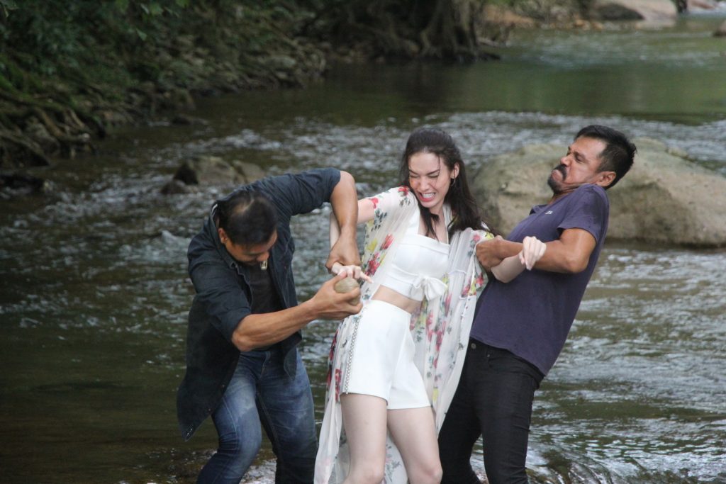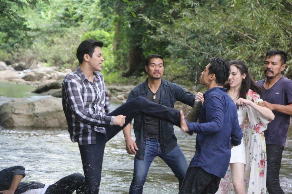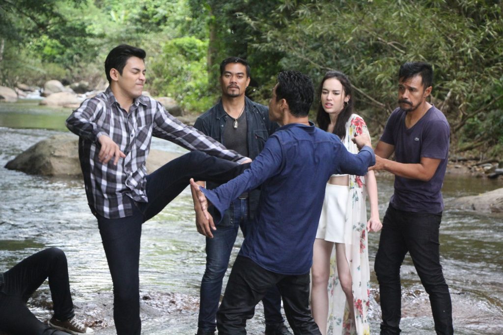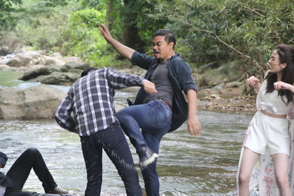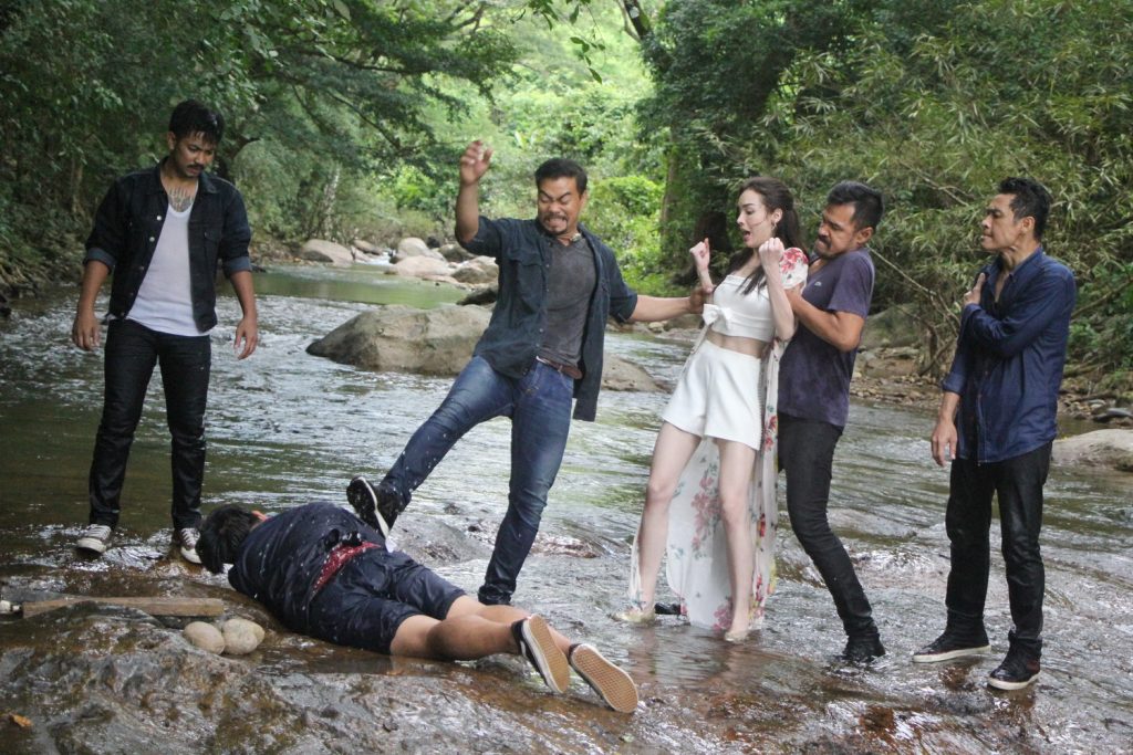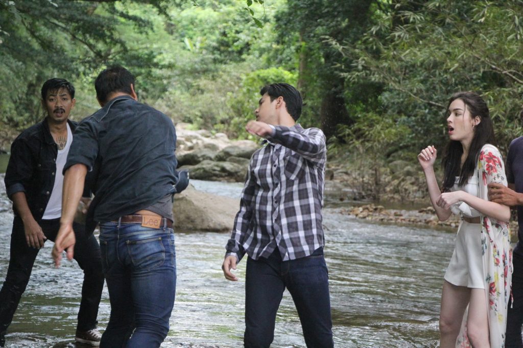 จากนั้นถึงคิวพระเอกขี่ม้าขาวอย่าง อาทิตย์ เข้ามาช่วย โดยส่งเสียงมาก่อน จากนั้นก็ใส่คิวบู๊กันไม่ยั้ง โดยซีนนี้ทั้งนักแสดงหลัก และนักแสดงร่วมต้องระวังมากเป็นพิเศษ เพราะก้อนหินมีตะไคร้น้ำ ทำให้ลื่นได้ง่าย