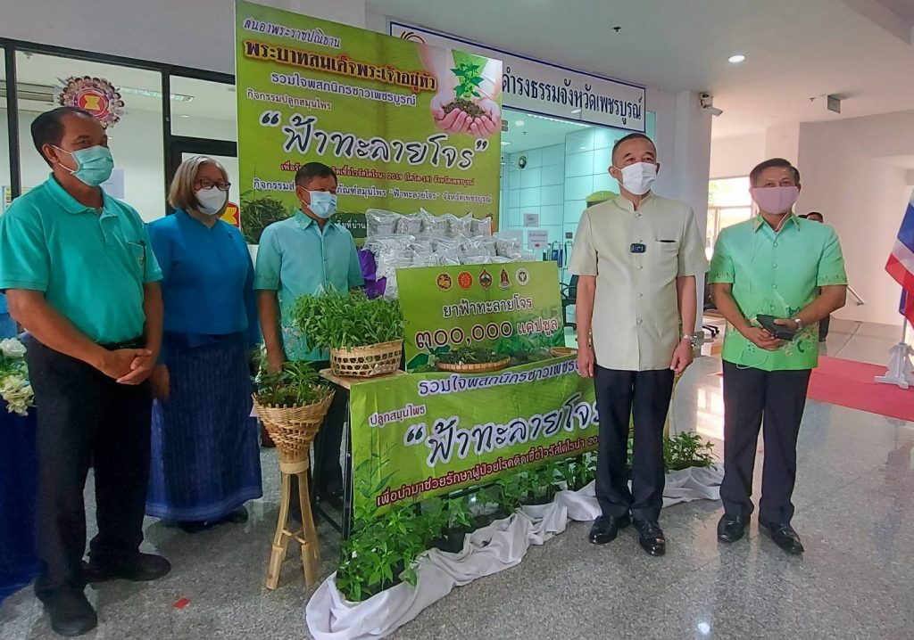 ทั้งนี้ในพื้นที่จังหวัดเพชรบูรณ์ ปัจจุบันมีการรณรงค์ปลูกสมุนไพรฟ้าทะลายโจร ทุกหลังคาเรือนตามหมู่บ้านและตามวัด โดยในส่วนของครัวเรือน มีผู้ที่ร่วมในการปลูก ๒๙๓,๑๔๐ ครัวเรือน ใน ๑,๔๓๐ หมู่บ้าน จำนวน ๑,๑๒๐,๔๐๐ ต้น รวมทั้งกระจายในวัด ๑๑๐ วัด จำนวน ๔๓,๐๙๐ ต้น ทั้งนี้คาดว่าจะสามารถผลิตสมุนไพรฟ้าทะลายโจรแคปซูปได้เพียงพอตลอดระยะที่มีสถานการณ์การแพร่ระบาดของโรคติดเชื้อไวรัสโคโรน่า ๒๐๑๙ ในพื้นที่จังหวัดเพชรบูรณ์ นอกจากนี้ยังได้เตรียมแผนในการสนับสนุนสมุนไพรฟ้าทะลายโจรแคปซูปเพื่อช่วยเหลือจังหวัดใก้ลเคียงด้วย