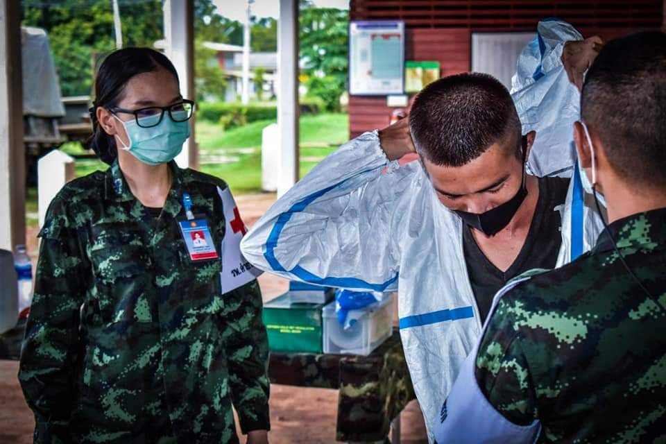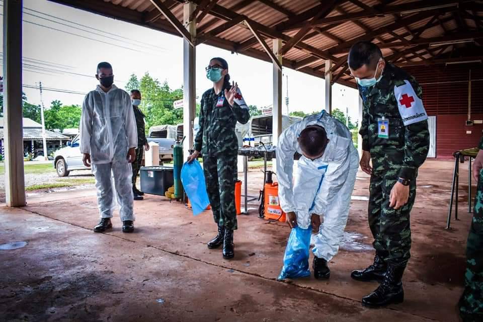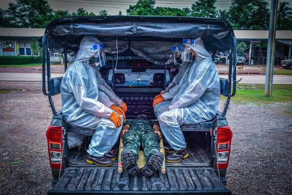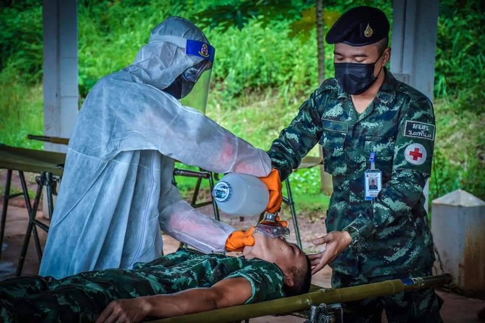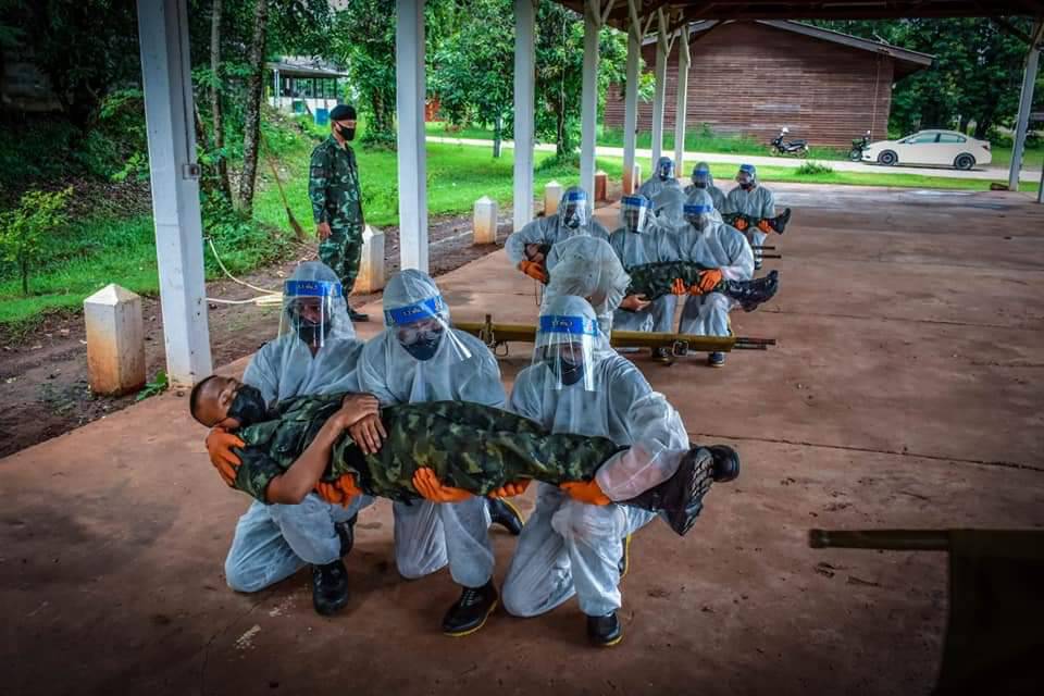 _ ที่ค่ายพระยอดเมืองขวาง ตำบลกุรุคุ อำเภอเมือง จังหวัดนครพนม ผู้สื่อข่าวรายงานว่า กำลังพลของกองพันทหารราบที่ 3 กรมทหารราบที่ 3 บูรณาการร่วมกับ โรงพยาบาลค่ายพระยอดเมืองขวาง จัดการฝึกอบรมการเข้าช่วยเหลือเคลื่อนย้าย กู้ชีพ ผู้ป่วยที่อยู่ในสภาวะติดเชื้อซึ่งเสี่ยงต่อการแพร่ระบาดเชื้อไวรัส COVID-19 เป็นการฝึก (Unit School) ในเรื่องการรับ – ส่ง ผู้ป่วยติดเชื้อ Covid – 19 ได้เเก่ การสวมใส่ชุด PPE การทำความสะอาดภายในรถหลังการใช้งาน และการดูแลสุขอนามัยส่วนบุคคลการซักซ้อมการปฏิบัติของหมวดเสนารักษ์ ในเรื่องการเคลื่อนย้ายผู้ป่วย เตรียมพร้อมด้านกำลังพล ยุทโธปกรณ์ ฝึกความชำนาญของกำลังพล เพื่อเข้าช่วยเหลือประชาชนได้อย่างปลอดภัย ทั้งผู้ให้การช่วยเหลือ และผู้ได้รับการช่วยเหลือได้อย่างมีประสิทธิภาพ เพื่อเตรียมรับภารกิจ ในการแก้ไขสถานการณ์ดังกล่าว เป็นความห่วงใยของผู้บัญชาการทหารบกต่อสถานการณ์การแพร่ระบาดของโรคติดเชื้อไวรัส Covid -19 ที่มียอดผู้ติดเชื้อเพิ่มขึ้นเป็นจำนวนมาก กองทัพบก จึงมีนโยบายให้หน่วยทหาร เตรียมความพร้อมด้านกำลังพลและยุทโธปกรณ์ของหน่วย ให้สามารถสนับสนุนส่วนราชการต่างๆ ในการช่วยเหลือประชาชนผู้ป่วยโควิด-19 ต่อไป
