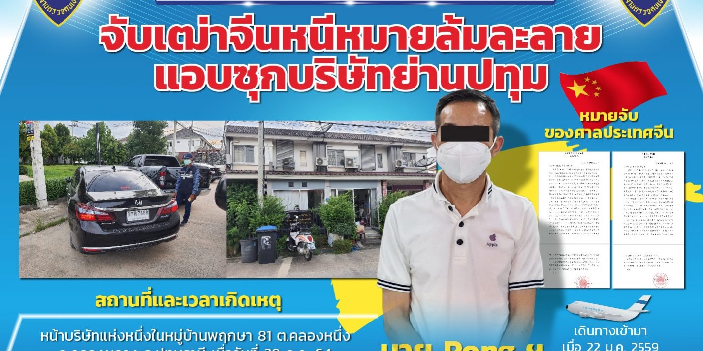 ภายหลังจากได้รับการร้องเรียนของประชาชนในหมู่บ้านแห่งหนึ่ง ย่านอำเภอคลองหลวง จังหวัดปทุมธานี โดยมีข้อมูลว่ามีชายสูงอายุลักษณะคล้ายคนจีน อาศัยอยู่ในบ้านหลังหนึ่งซึ่งมีลักษณะมีป้ายบริษัทอยู่หน้าบ้าน แต่ไม่พบเห็นว่ามีใครเข้ามาติดต่องานบริษัทดังกล่าว โดยนานๆ ครั้งจะมีชายคนหนึ่งลักษณะคล้ายคนจีนปรากฏตัวออกมาจากบ้านหลังดังกล่าว และขณะเดินออกมาจากบ้านจะมีท่าทีที่ระวังตัวเป็นอย่างมาก เป็นที่น่าสงสัยว่าอาจหลบหนีเข้ามาหรือหนีความผิดบางอย่าง ชุดสืบสวนได้ทำการสืบสวนอยู่ระยะหนึ่งจนได้ข้อมูลว่า