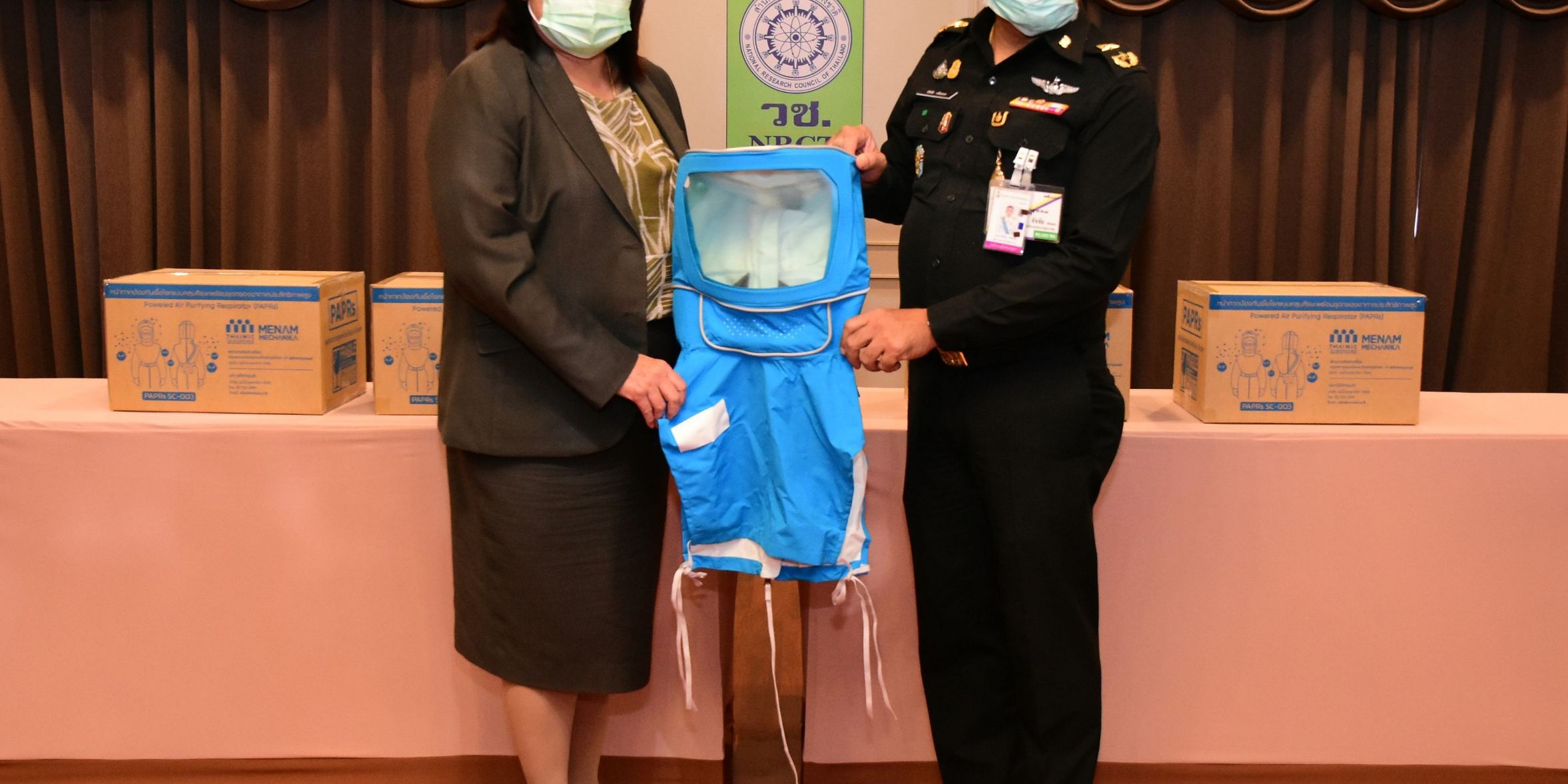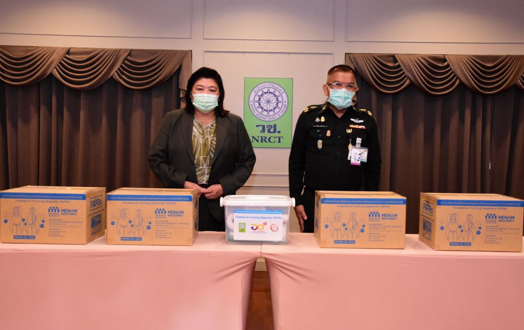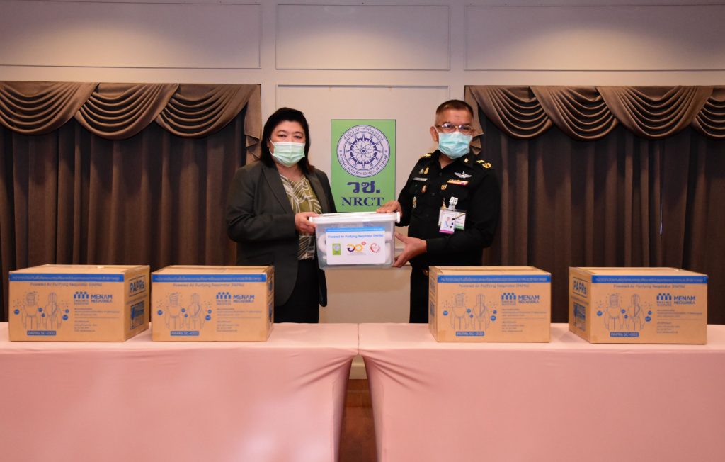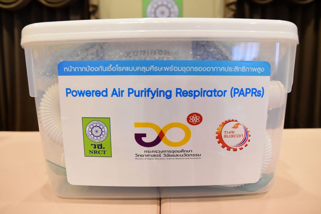 สำนักงานการวิจัยแห่งชาติ (วช.) กระทรวงการอุดมศึกษา วิทยาศาสตร์ วิจัยและนวัตกรรม (อว.) มอบนวัตกรรมชุดหน้ากากป้องกันเชื้อโรคแบบคลุมศีรษะ พร้อมชุดกรองอากาศประสิทธิภาพสูง (PAPR) ให้แก่โรงพยาบาลอานันทมหิดล เพื่อใช้รองรับผู้ป่วยในโรงพยาบาลที่มีอาการรุนแรง และใช้รับมือกับสถานการณ์โรคติดเชื้อไวรัสโคโรนา 2019 ที่กำลังระบาดในขณะนี้
