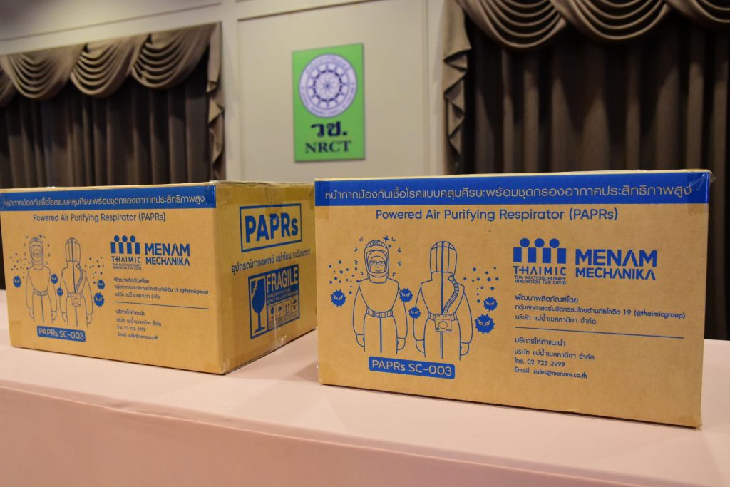 สำหรับนวัตกรรมชุดหน้ากากป้องกันเชื้อโรคแบบคลุมศีรษะพร้อมชุดกรองอากาศประสิทธิภาพสูง หรือ PAPR เป็นนวัตกรรมทางการแพทย์ของทีมนักวิจัย นำโดย นายแพทย์เข็มชาติ หวังทวีทรัพย์ แห่งคณะแพทยศาสตร์ ศิริราชพยาบาล ร่วมกับสมาคมส่งเสริมการรับช่วงการผลิตไทยที่ได้รับการสนับสนุนจาก (วช.) ได้มีการพัฒนาชุดหน้ากากป้องกันเชื้อโรคฯ อย่างต่อเนื่อง โดยชุดหน้ากากส่วนหัวได้ขยายให้มีขนาดใหญ่ขึ้น ท่อลมปรับให้ความแน่นหนา กล่องพัดลมมีความเพรียวบาง มีปุ่มปรับแรงลม มีเกจย์บอกระดับแบตเตอรี่ที่สามารถใช้งานต่อเนื่องได้มากกว่า 4 ชั่วโมง สามารถชาร์จไฟด้วยสายยูเอสบีแบบซีได้ จึงมีความสะดวกในการนำไปใช้งานมากยิ่งขึ้น