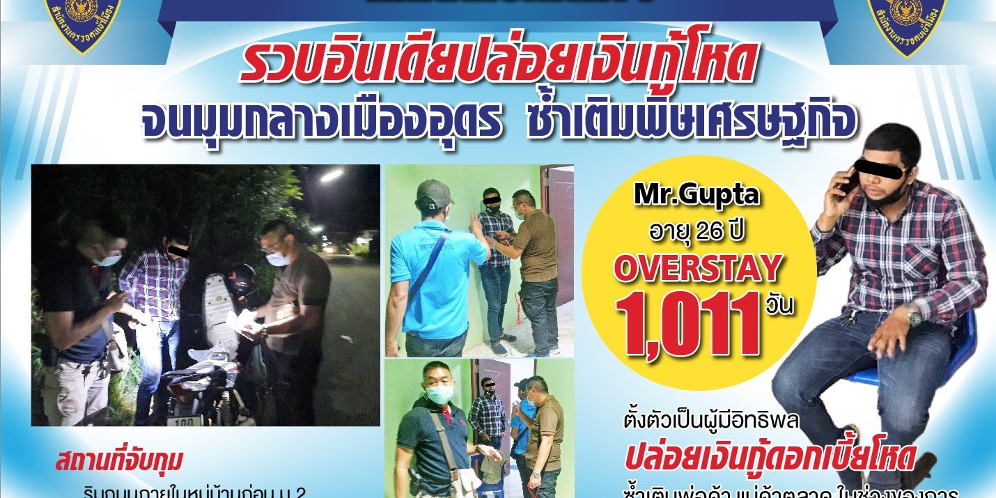 ร้อยละ 2–3 ต่อวัน เป็นเหตุให้ได้รับความเดือดร้อนเป็นอย่างมาก กก.สส.บก.ตม.4 จึงประสาน ตม.จ.อุดรธานี ออกสืบสวนหาข่าวจนทราบว่า มีบุคคลต่างด้าวสัญชาติอินเดีย มักจะขับขี่รถจักรยานยนต์เข้าเก็บดอกเบี้ยจากพ่อค้าแม่ค้าตลาดสด จึงเข้าแสดงตัวเป็นพนักงานเจ้าหน้าที่เข้าตรวจสอบ จึงทราบว่า คือ MR.VIKASH อายุ 26 ปีสัญชาติอินเดีย จากการตรวจสอบโดยใช้ระบบสารสนเทศตรวจคนเข้าเมือง (Biometrics) พบว่า เดินทางเข้ามาในราชอาณาจักรทาง ด่าน ตม.ทอ.สุวรรณภูมิ ได้รับการอนุญาตให้อยู่ในราชอาณาจักรประเภทนักท่องเที่ยว 60 วัน และบุคคลดังกล่าวได้มาพำนักอยู่ในพื้นที่ อ.บ้านผือ เรื่อยมา