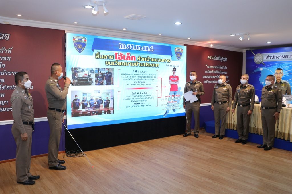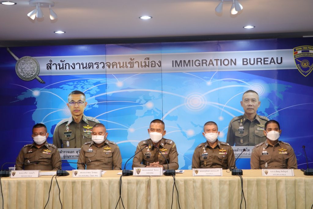 วันที่ 4 ส.ค.64 เวลา 13.30 น.ณ ห้องอเนกประสงค์ ชั้น 1 อาคาร 1 สตม. ซอยสวนพลู แขวงทุ่งมหาเมฆ เขตสาทร กรุงเทพมหานคร : พล.ต.ท.สมพงษ์ ชิงดวง ผบช.สตม.พร้อมด้วย พล.ต.ต.อาชยน ไกรทอง รอง ผบช.สตม.,พล.ต.ต.กฤษฎา กาญจนอลงกรณ์ ผบก.ตม.4,พ.ต.อ.เอกกมนต์ พรชูเกียรติ,พ.ต.อ.วีรยศ การุณยธร,พ.ต.อ.ปรีชา กองแก้ว รอง ผบก.ตม.4 และ พ.ต.อ.พิษณุ สิทธิฑูรย์ ผกก.สส.บก.ตม.4 ร่วมแถลงข่าวการจับกุม ดังนี้