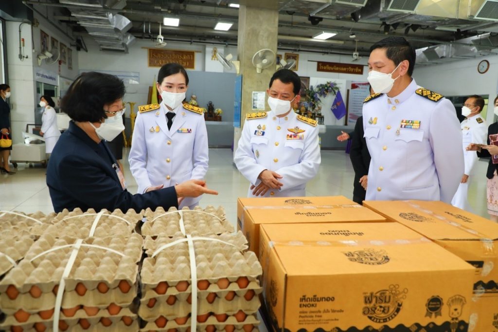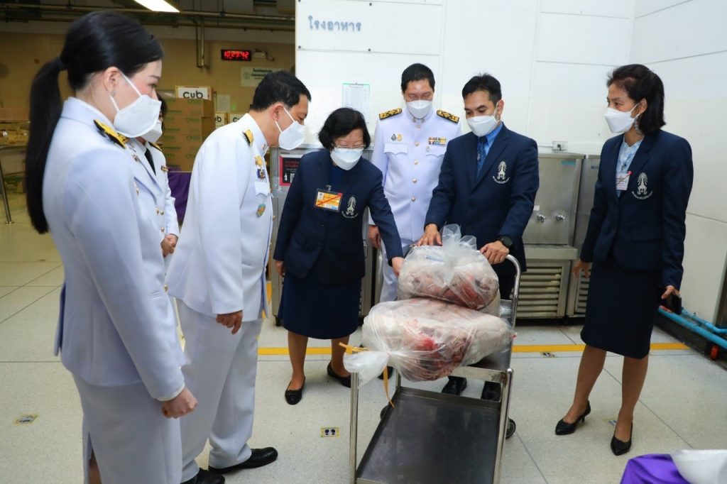 วัตถุดิบประกอบอาหารที่พระราชทาน สำหรับใช้ประกอบอาหารเพื่อโรงพยาบาลสนามและศูนย์พักคอยผู้ป่วยโรคโควิด-19 ในเครือข่าย (อว.) รวมถึงผู้ได้รับผลกระทบจากโควิด-19 ประกอบด้วย ไข่ไก่สด จำนวน 3,000 ฟอง,เห็ดเข็มทอง จำนวน 300 กิโลกรัม,เป็ดสด จำนวน 500 ตัว,กระเทียมสดจากจังหวัดแม่ฮ่องสอน จำนวน 20 กิโลกรัม,ข้าวเกษตรอินทรีย์ จำนวน 500 ถุง,ข้าวสารจากข้าวพันธุ์ดี กข 43 จำนวน 920 ถุง,กุ้งขาวแวนนาไมแช่แข็ง จำนวน 190 กิโลกรัม,หน่อไม้สด นึ่ง จำนวน 10 ปี๊บ,ผลิตภัณฑ์ตรานายประมง ได้แก่ เนื้อปลาเก๋า จำนวน 176 ห่อ,ปลาข้างเหลือง จำนวน 144 ห่อ และปลาไหล จำนวน 36 ห่อ นับเป็นพระมหากรุณาธิคุณอย่างหาที่สุดมิได้