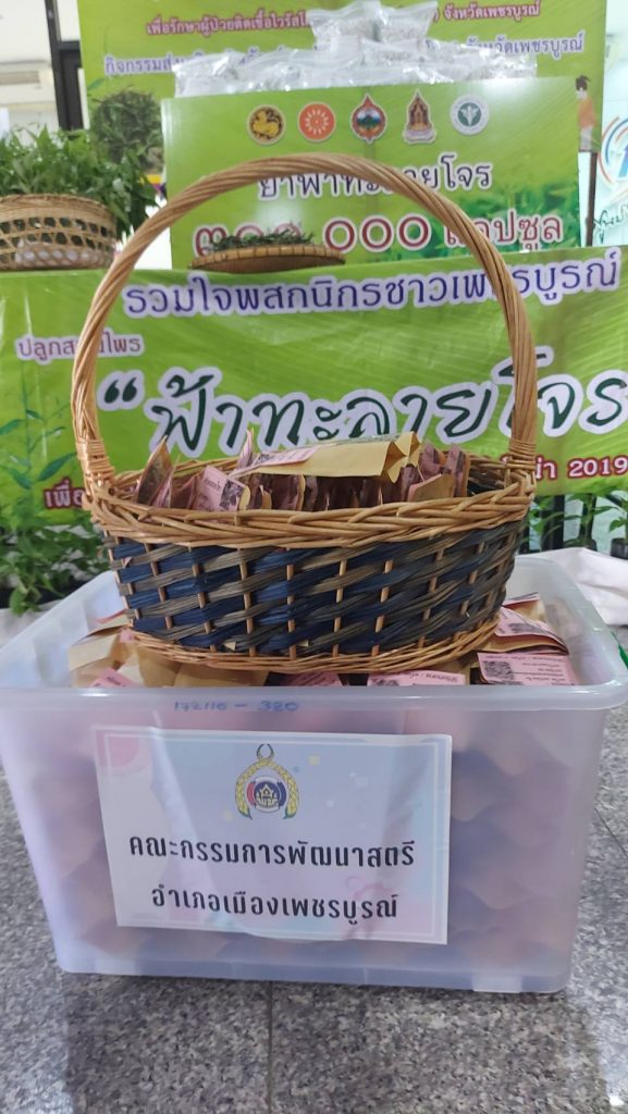ที่บริเวณห้องโถงชั้น 1 อาคาร 1 ศาลากลางจังหวัดเพชรบูรณ์ นางอรวรรยา หุ่นทอง ประธานคณะกรรมการพัฒนาสตรีอำเภอเมืองเพชรบูรณ์ นำคณะกรรมการพัฒนาสตรีอำเภอเมืองเพชรบูรณ์ มอบสมุนไพรฟ้าทะลายโจรแคปซูล จำนวน 20,000 แคปซูลให้กับผู้ป่วยโรคติดเชื้อไวรัสโคโรนา 2019 (COVID-19) ซึ่งทางคณะกรรมการพัฒนาสตรีตำบลต่างๆในพื้นที่อำเภอเมืองเพชรบูรณ์ ได้รวบรวมและผลิตเป็นแคปซูลเพื่อสนองพระราชปณิธาน และเทิดพระเกียรติพระบาทสมเด็จพระเจ้าอยู่หัว ที่ทรงพระปรีชาในการส่งเสริมสนับสนุนให้ใช้ยาสมุนไพรไทยฟ้าทะลายโจร รักษาผู้ป่วยโรคติดเชื้อไวรัสโคโรนา 2019 (COVID-19) โดยมีนายกฤษณ์ คงเมือง ผู้ว่าราชการจังหวัดเพชรบูรณ์ พร้อมด้วยหัวหน้าส่วนราชการร่วมรับมอบทั้งนี้ “ฟ้าทะลายโจร” เป็นหนึ่งในทางเลือกที่สามารถนำไปใช้ในการรักษาผู้ป่วยโรคโควิด-19 นอกจากนี้ ยังสามารถใช้เป็นยารักษาโรคได้ดี และปลอดภัยสูงโดยไม่ต้องผสมกับยาตัวอื่น จึงนับว่าเป็นสมุนไพรที่มีความพิเศษเป็นอย่างมาก