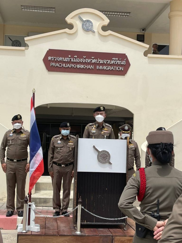 ตามนโยบาย พล.ต.อ.สุวัฒน์ แจ้งยอดสุข ผบ.ตร. และ พล.ต.อ.ดำรงศักดิ์ กิตติประภัสร์ รอง ผบ.ตร. ให้ตรวจเยี่ยมและให้กำลังใจ แก่เจ้าหน้าที่ผู้ปฏิบัติงาน โดย พล.ต.ท.สมพงษ์ ชิงดวง ผบช.สตม. พร้อมด้วย พ.ต.อ.สถิตย์ พรหมอุทัย,พ.ต.อ.อาภากร โกมลสุทธิรอง ผบก.สส.สตม. และ พ.ต.อ.มานะ นาคทั่ง รอง ผบก.ตม.5 เดินทางตรวจเยี่ยม และมอบนโยบาย กำชับการปฏิบัติราชการของเจ้าหน้าที่ตำรวจตรวจคนเข้าเมือง จ.ประจวบคีรีขันธ์ พบ พ.ต.อ.สุทธิพงษ์ พุทธิพงษ์ผกก.ตม.จ.ประจวบคีรีขันธ์ และข้าราชการ ตำรวจตรวจคนเข้าเมือง จังหวัดประจวบคีรีขันธ์ ปฏิบัติหน้าที่โดยเคร่งครัด