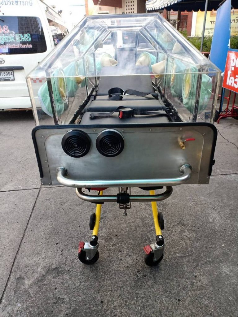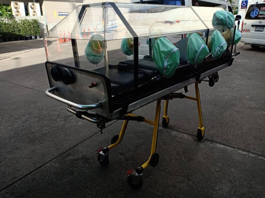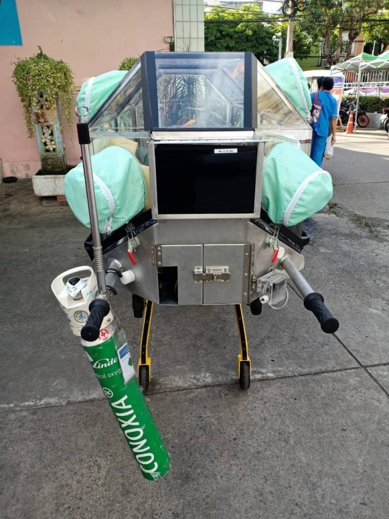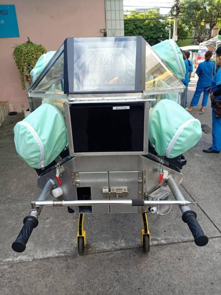 ผศ.ดร.ณัฐพล ฤกษ์เกษมสันติ์ อาจารย์ประจำภาควิศวกรรมเคมี สถาบันเทคโนโลยีพระจอมเกล้าเจ้าคุณทหารลาดกระบัง เปิดเผยว่า จากความรุนแรงของสถานการณ์ผู้ป่วยโควิด-19 มีอาการหนักที่มีจำนวนเพิ่มขึ้นมากอย่างชัดเจน ประเด็นที่น่าเป็นห่วงคือ การช่วยเหลือผู้ป่วยก่อนที่ผู้ป่วยจะมาถึงโรงพยาบาล ที่จะทำให้แพทย์และพยาบาลสามารถสังเกตอาการของผู้ป่วยได้ในระหว่างการเคลื่อนย้าย (สจล.) ได้รับการสนับสนุนจากสำนักงานการวิจัยแห่งชาติ (วช.) กระทรวงการอุดมศึกษา วิทยาศาสตร์ วิจัยและนวัตกรรม (อว.) เพื่อวิจัยออกแบบและพัฒนาเตียงเคลื่อนย้ายผู้ป่วยความดันลบที่สามารถวัดและส่งค่าสัญญาณชีพผู้ป่วยผ่านระบบคลาวด์