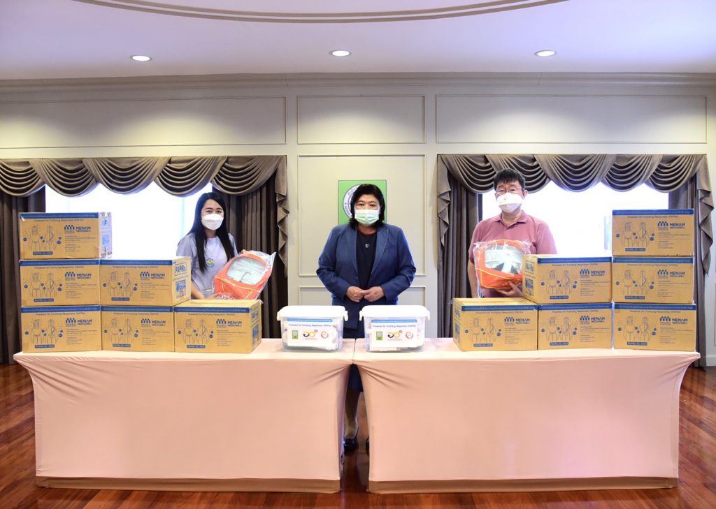 วันที่ 10 สิงหาคม 2564 : ดร.วิภารัตน์ ดีอ่อง ผู้อำนวยการสำนักงานการวิจัยแห่งชาติ (วช.) มอบนวัตกรรมชุดหน้ากากป้องกันเชื้อโรคแบบคลุมศีรษะ พร้อมชุดกรองอากาศประสิทธิภาพสูง (PAPR) จำนวน 23 ชุด แก่ นายวรวิทย์ ตันติวัฒนทรัพย์ ผู้อำนวยการโรงพยาบาลอุ้มผาง และโรงพยาบาลอื่นๆ ในจังหวัดตาก อีกจำนวน 6 แห่ง ประกอบด้วย โรงพยาบาลพบพระ,โรงพยาบาลแม่สอด,โรงพยาบาลแม่ระมาด,โรงพยาบาลท่าสองยาง,โรงพยาบาลบ้านตาก และโรงพยาบาลสามเงา