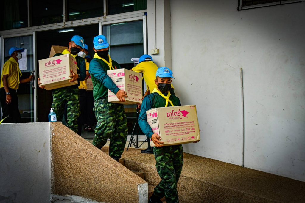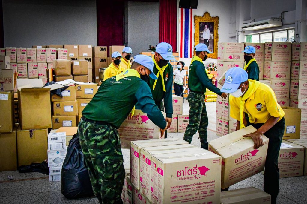 13/08/64 ที่ค่ายสีหราชเดโชไชย อ.เมือง จ.ขอนแก่น กำลังพลทหารจิตอาสากรมทหารราบที่ 8 เข้าช่วยสนับสนุนสำนักงานสาธารณสุขจังหวัดขอนแก่น ในการขนย้ายอุปกรณ์ทางการแพทย์ และเวชภัณฑ์ ที่ได้รับสนับสนุนจากกรมสนับสนุนบริการสุขภาพ กระทรวงสาธารณสุข พร้อมทั้งช่วยจัดสรรอุปกรณ์ทางการแพทย์และเวชภัณฑ์เพื่อส่งมอบให้กับอาสาสมัครสาธารณสุขประจำหมู่บ้าน (อสม.) ทั้ง 26 อำเภอ ในพื้นที่จังหวัดขอนแก่น เพื่อใช้ในการปฏิบัติงานเฝ้าระวังป้องกันและควบคุมโรคติดเชื้อไวรัสโคโรน่า 2019 ณ ห้องประชุมวิทยาลัยการสาธารณสุขสิรินธร จังหวัดขอนแก่น สำหรับอุปกรณ์ที่ช่วยจัดสรรในวันนี้คือหน้ากากอนามัยทางการแพทย์ เตียงสนามและสิ่งอุปกรณ์สนับสนุนทางการแพทย์ สำหรับสถานการณ์การแพร่ระบาดของเชื้อไวรัสโคโรนา 2019 ในพื้นที่ 26 อำเภอ ของจังหวัดขอนแก่น ปัจจุบันยังพบผู้ติดเชื้อรายใหม่ทั้งในส่วนของการติดเชื้อในจังหวัด และประชาชนที่เดินทางมาจากพื้นที่เสี่ยง อีกทั้งรับผู้ป่วยโควิด- 19 จากพื้นที่สีแดงเข้มกลับมารักษาตัวที่ภูมิลำเนา อีกทั้งเป็นการอำนวยความสะสวกให้กับพี่น้องประชาชนเข้ามารับการรักษา จะได้มีความรวดเร็วมากยิ่งขึ้น จากการปฏิบัติในครั้งนี้ หน่วยได้รับความร่วมมือจากเจ้าหน้าที่โรงพยาบาล พร้อมได้รับความขอบคุณ และชื่นชมที่หน่วยได้ให้ความช่วยเหลือในครั้งนี้ด้วย กรมทหารราบที่ 8 พร้อมให้การสนับสนุนและช่วยเหลือประชาชนให้ผ่านพ้นภัยโควิด-19 ไปด้วยกัน