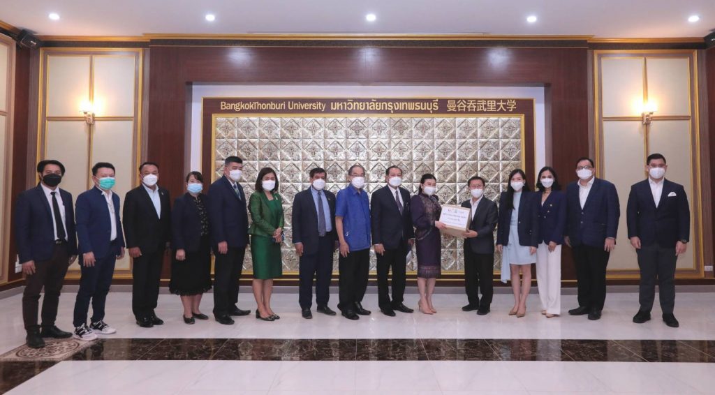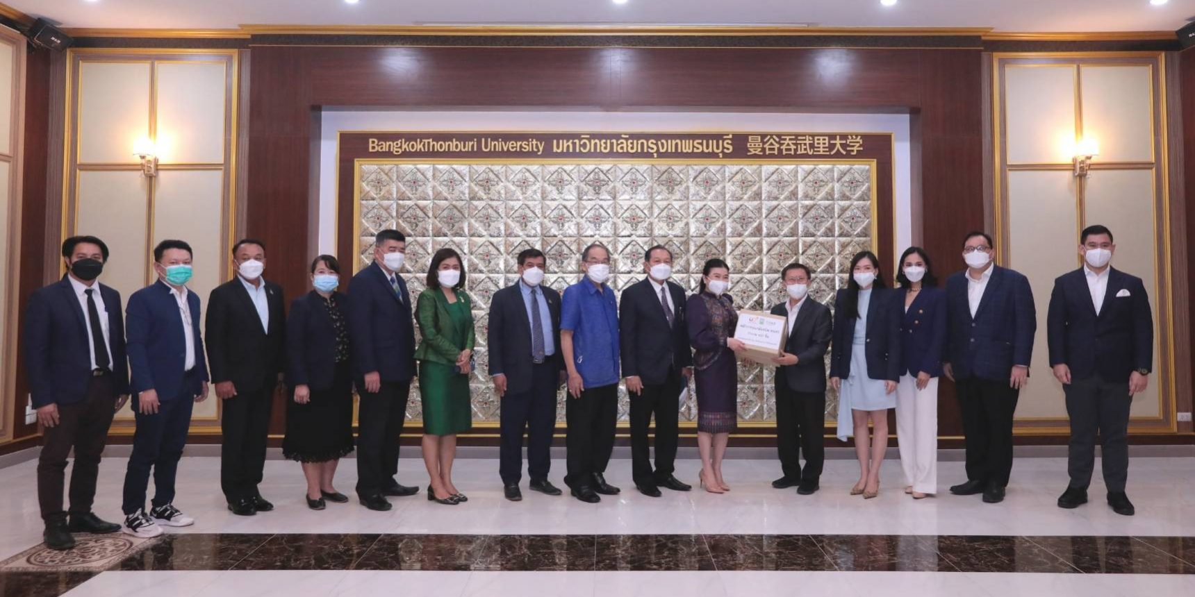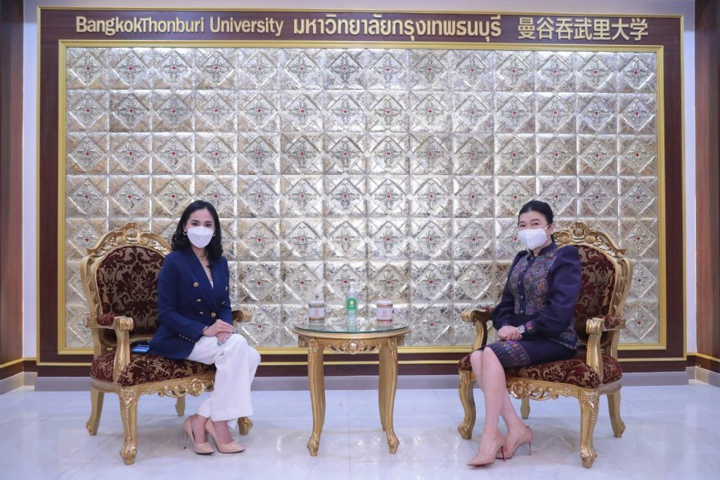 คณะผู้บริหารกระทรวงการอุดมศึกษา วิทยาศาสตร์ วิจัยและนวัตกรรม (อว.) นำโดย ผศ.ดร.ดวงฤทธิ์ เบ็ญจาธิกุล ชัยรุ่งเรือง เลขานุการรัฐมนตรีว่าการและโฆษกกระทรวง อว. พร้อมด้วย ดร.พัชรินทร์รุจา จันทโรนานนท์ ที่ปรึกษารัฐมนตรีว่าการกระทรวง อว. ดร.ดนุช ตันเทอดทิตย์ กรรมการผู้ช่วยรัฐมนตรีประจำกระทรวง อว. คุณสุเมธ ตั้งประเสริฐ กรรมการผู้ทรงคุณวุฒิ องค์การพิพิธภัณฑ์วิทยาศาสตร์แห่งชาติ (อพวช.) และทีมโฆษกกระทรวง อว. ร่วมประชุมหารือแลกเปลี่ยนข้อคิดเห็นร่วมกับ รศ.ดร.บังอร เบ็ญจาธิกุล อธิการบดีมหาวิทยาลัยกรุงเทพธนบุรี และคณะผู้บริหาร คณาจารย์ของมหาวิทยาลัยฯ เกี่ยวกับประเด็นด้านการบริหารการจัดการเรียนการสอน และมาตรการให้ความช่วยเหลือนักศึกษาและผู้ปกครองในสถานการณ์แพร่ระบาดของโรคโควิด-19 ณ ห้องรับรองชั้น 4 อาคาร Sport Complex มหาวิทยาลัยกรุงเทพธนบุรี พร้อมเยี่ยมชมการดำเนินงานมหาวิทยาลัยฯ ในสถานการณ์ดังกล่าวด้วย