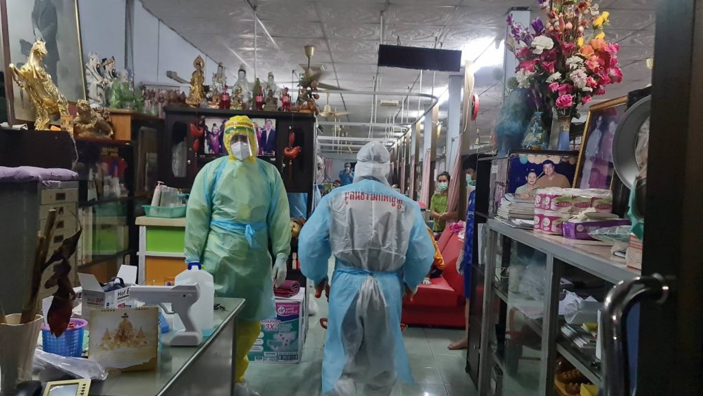 หลังได้รับแจ้งว่า ที่นี่มีผู้ติดเชื่อโควิด-19 กว่า 30 คน โดยมีคนเสียชีวิตไปแล้ว 6 คน ซึ่งตอนนี้ผู้ป่วยสีเเดงได้ไปโรงพยาบาลแล้ว ยังคงเหลือผู้สูงอายุอีก 13 คน และ ผู้ดูแลอีก 11 คน