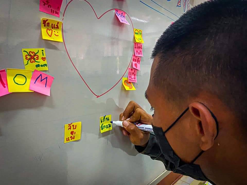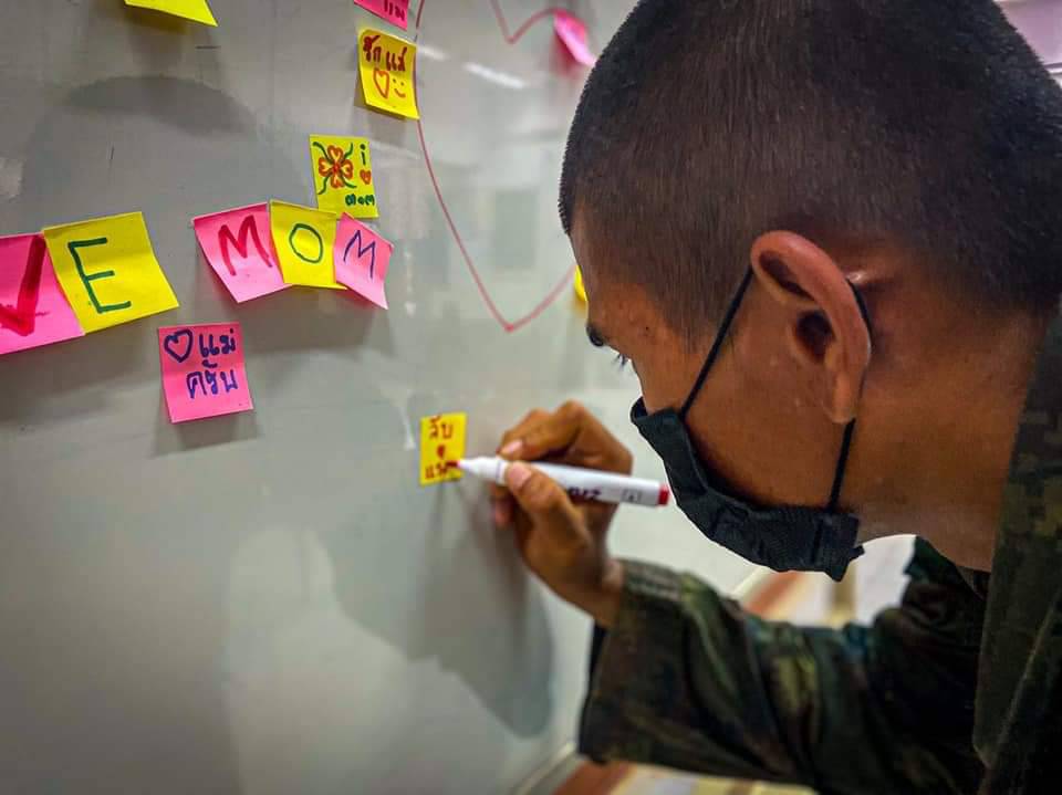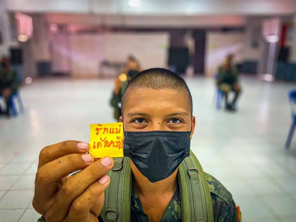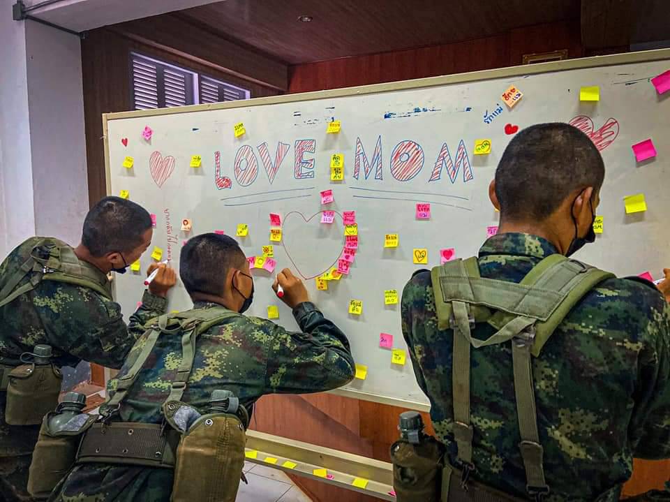 __ วันที่ 15 ส.ค.2564 ที่ค่ายพระยอดเมืองขวาง ตำบลกุรุคุ อำเภอเมือง จังหวัดนครพนม ผู้สื่อข่าวรายงานว่าในห้วงวันที่ 12 สิงหาคม 2564 ที่ผ่านมา ทางหน่วยฝึกทหารใหม่ ร.3 พัน.3 ได้จัดกิจกรรมผ่อนคลายในรูปแบบ social distancing ให้น้องๆทหารใหม่ส่งความรักผ่านข้อความตัวหนังสือ แทนความรู้สึกบอกรักแม่ เนื่องในวันแม่แห่งชาติ ประจำปี 2564 ทั้งยังได้ VDO Call พูดคุยกับแม่ และครอบครัวที่อยู่ทางบ้าน เพื่อเป็นการบอกรักแม่ทางออนไลน์ เป็นการผ่อนคลายจากการคิดถึงแม่ที่อยู่ทางบ้าน ในห้วงของการฝึกและการกักตัวในการฝึกทหารใหม่ ผลัดที่ 1/64 ภายใต้การฝึกและพักอาศัยให้อยู่ในระบบปิด แบบ Bubble and Seal จำกัดเฉพาะผู้ที่มีหน้าที่เกี่ยวข้องกับการฝึกเท่านั้น ตามมาตรการการรับทหารกองประจำการในสถานการณ์การแพร่ระบาดของโควิด-19 ซึ่งต้องเป็นไปตามนโยบายของกองทัพบกและทางสาธารณสุขจังหวัดกำหนดอย่างเคร่งครัด ความพร้อมด้านการฝึกแบบ New normal และที่สำคัญได้ให้คำแนะนำตามนโยบายสั่งการของผู้บัญชาการทหารบก ในการฝึกภายใต้มาตรการป้องกันไวรัส Covid-19 มาตรการที่รัดกุมเพื่อให้แน่ใจว่าจะไม่เกิดการแพร่ระบาดแบบกลุ่มของหน่วยฝึกทหารใหม่ในค่ายพระยอดเมืองขวาง ตามนโยบาย พลเอก ณรงค์พันธ์ จิตต์แก้วแท้ ผู้บัญชาการทหารบก ที่มอบให้กรมยุทธศึกษาทหารบก เป็นผู้กำหนดมาตรการในการบริหารจัดการฝึกทหารใหม่ ให้มีความปลอดภัยลดความเสี่ยงการแพร่กระจายเชื้อและเป็นไปตามที่ ศบค.กำหนดอย่างเคร่งครัด