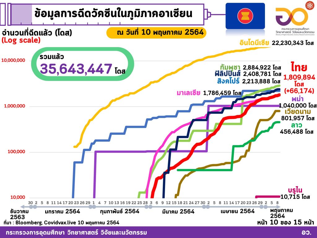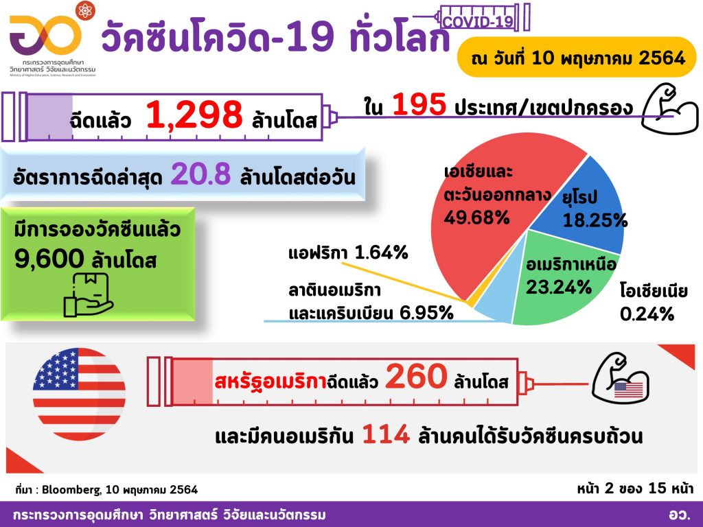 ทั้งนี้ ทั่วโลกได้ฉีดวัคซีนแล้ว 1,298 ล้านโดสใน 195 ประเทศ ส่วนภูมิภาคอาเซียนได้ฉีดวัคซีนไปแล้ว 35,643,447 โดส