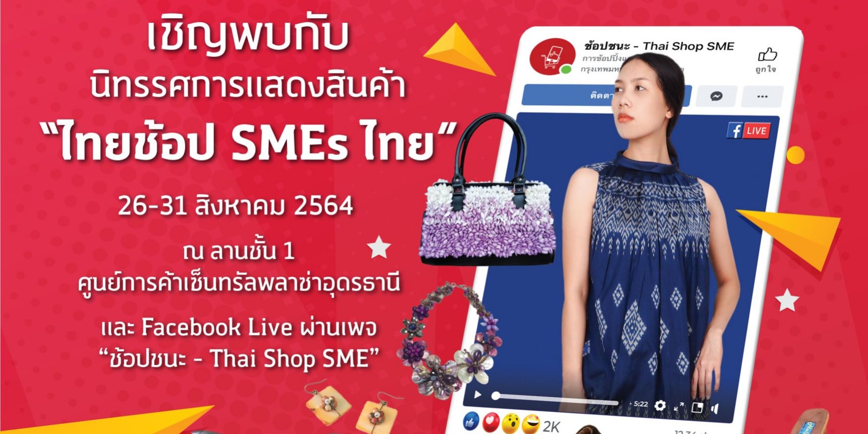 ในงานนิทรรศการแสดงสินค้า “ไทยช้อป SME ไทย” ในระหว่างวันที่ 26 – 31 สิงหาคม ตั้งแต่ เวลา 10.30 – 21.00 น. ณ ลานชั้น 1 ศูนย์การค้าเซ็นทรัลพลาซ่าอุดรธานี