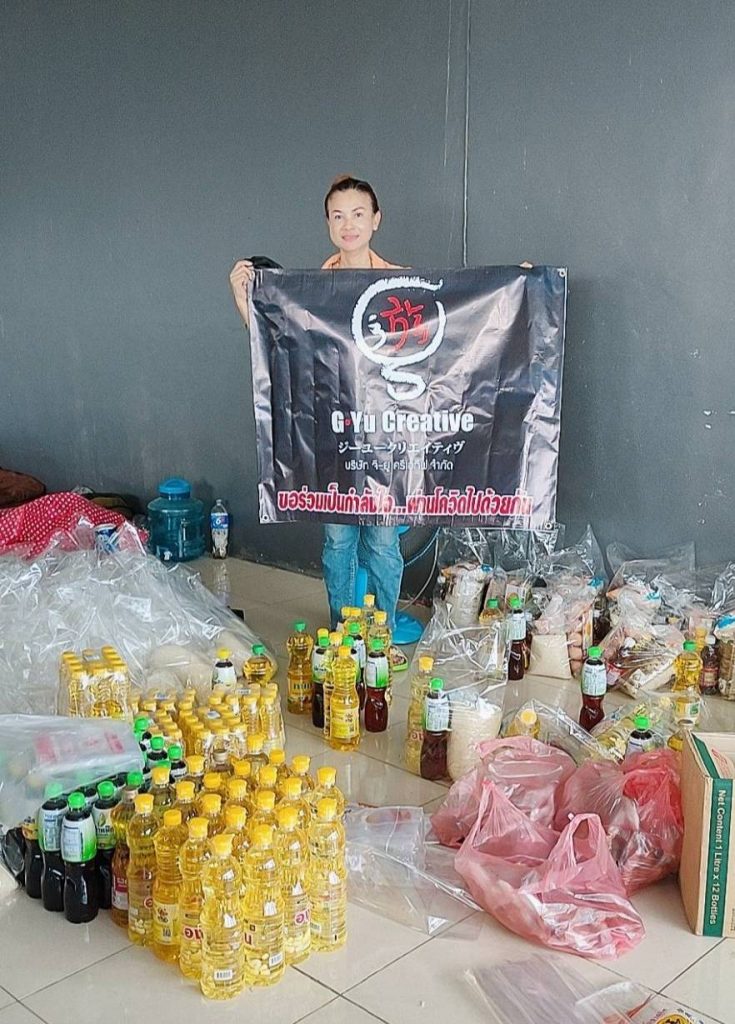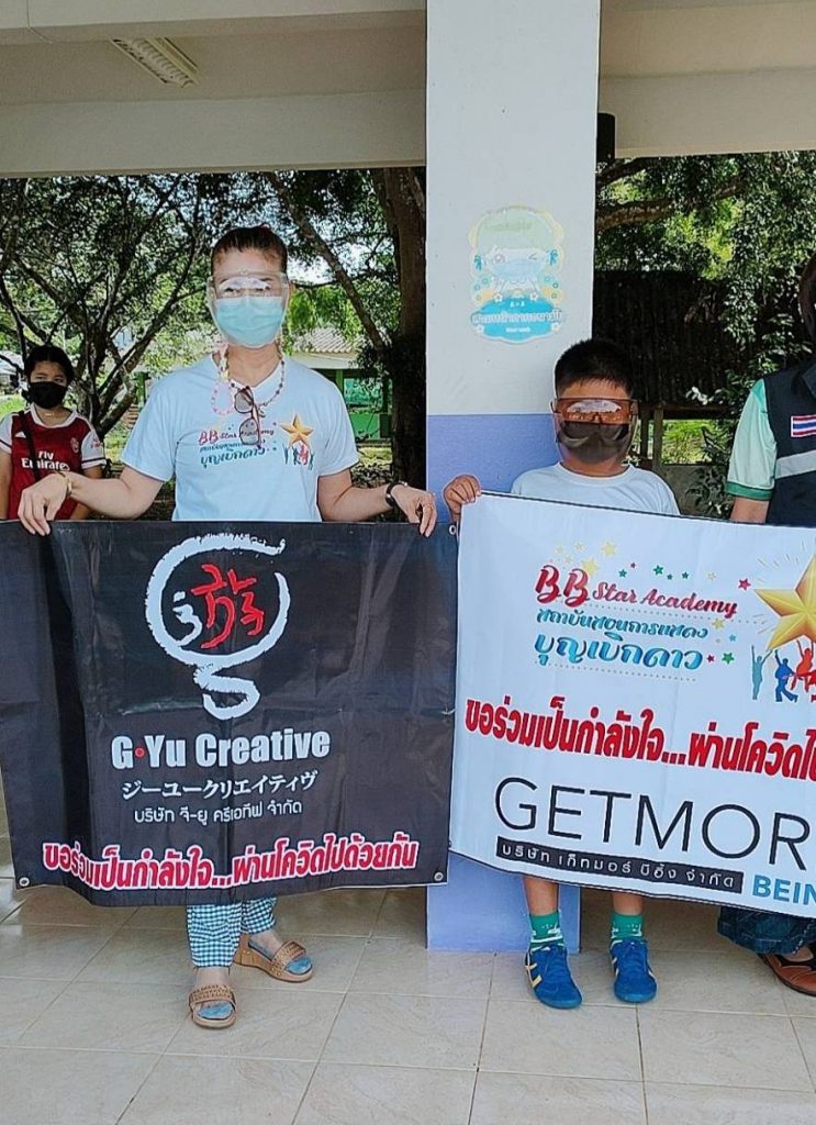 ไม่เพียงแค่นั้น บริษัท จียู ครีเอทีฟ จำกัด โดยซีอีโอคนเก่ง คุณยุพเรศ เอกธุระประคัลภ์ มอบเงินจำนวน 10,000 บาท เพื่อทำถุงยังชีพ จำนวน 150 ชุดมอบให้กับชาวบ้านในอำเภอบางขัน จ.นครศรีธรรมราช เพื่อการดำรงชีวิตในยุควิกฤตโควิด19 โดยมีผู้ใหญ่ใจบุญร่วมสมทบทุนทำถุงยังชีพในครั้งนี้ ได้แก่ GETMORE BEING, ดร.ไข่เหลี้ยม วิเชียรศรีชัย มโนราห์หนุ่มชื่อดังแห่งแดนสะตอ, คุณสัตตกมล วรกุล สาวเก่งจาก MBK CENTER, คุณนาริสา พรหมสุภา นักแสดงมากความสามารถ. คุณจุรัตน์ ชัยพรหมประสิทธิ์ พีอาร์สาวคนเก่ง, คุณอรอุมา ภูสีเงิน ผู้ปกครองเด็กชายพีรณัฐ ภูสีเงิน ลูกศิษย์คนเก่งของสถาบันสอนการแสดงบุญเบิกดาว BB STAR ACADEMY
