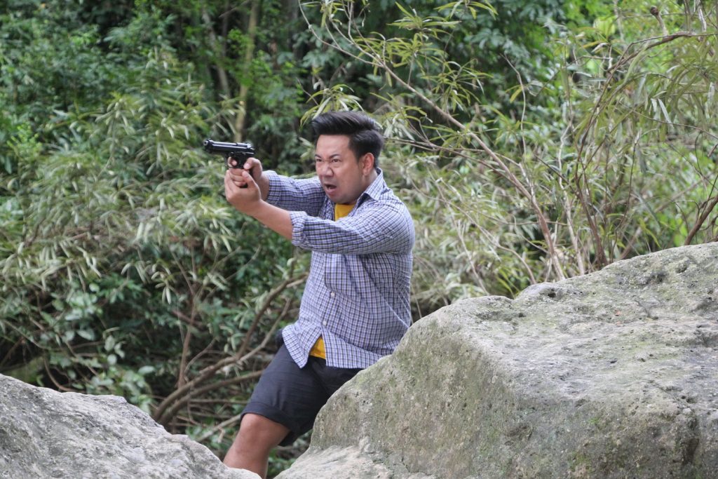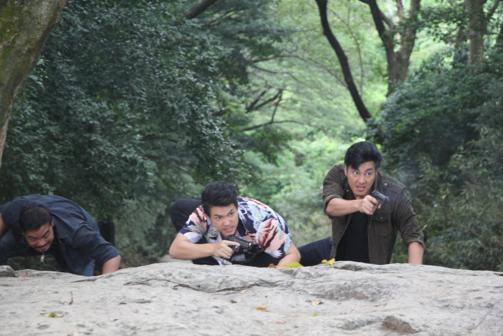 จากนั้นก็ให้คิว ริว เข้าฉาก พร้อมเอฟเฟ็กต์ปืน แล้วทีมงานก็ให้คิว หนึ่ง นึกคิด และพวกเข้าฉาก คราวนี้ก็ให้คิวดวลปืน โดยทีมงานต้องเก็บภาพทั้งสองฝั่ง แล้วค่อยมาอินเซิร์ชมุมนักแสดงแต่ละคน