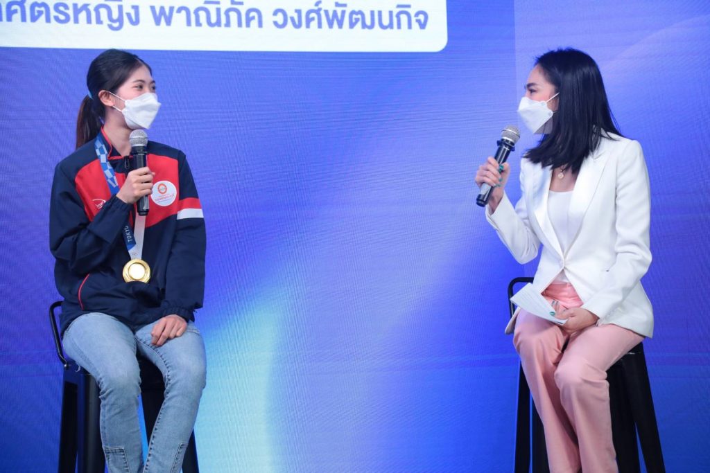นอกจากนี้ เรืออากาศตรีหญิง พาณิภัค วงศ์พัฒนกิจ พร้อมด้วย “คุณพ่อสิริชัย วงศ์พัฒนกิจ” มาร่วมสนทนาถ่ายทอดประสบการณ์ แนวคิด และการสร้างแรงบันดาลใจการเล่นกีฬาให้ประสบความสำเร็จอย่างมืออาชีพผ่านระบบ ZOOM ให้กับนักศึกษาคณะวิทยาศาสตร์และเทคโนโลยีการกีฬา อีกด้วย โดยมี จิรัฏฐวัฒน์ ศิริบุตร และ ณัฎฐา ชาญเลขา เป็นผู้ดำเนินรายการ