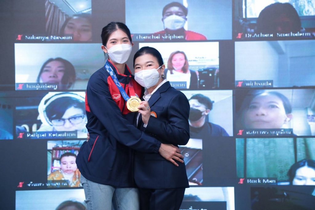 รศ.ดร.บังอร เบ็ญจาธิกุล อธิการบดี มหาวิทยาลัยกรุงเทพธนบุรี กล่าวแสดงความยินดีกับ น้องเทนนิส-เรืออากาศตรีหญิง พาณิภัค วงศ์พัฒนกิจ ฮีโร่เหรียญทองในนามของผู้บริหาร คณาจารย์ บุคคลากรทุกภาคส่วน นักศึกษาศิษย์ปัจจุบัน ศิษย์เก่า วิทยาลัยในเครือฯ ว่า ในนามของชาวไทยคนหนึ่ง ต้องบอกว่ามีความยินดีอย่างที่สุดที่ “น้องเทนนิส” ได้สร้างชื่อเสียงได้ทำเหรียญทองโอลิมปิก 2020 ที่ประเทศญี่ปุ่นมาฝากชาวไทยในครั้งนี้ ในฐานะที่อธิการบดีเป็นอธิการมหาวิทยาลัยกรุงเทพธนบุรี และ “น้องเทนนิส” เรียนในหลักสูตรปริญญาโท รัฐประศาสนศาสตรมหาบัณฑิต พวกเราชาวมหาวิทยาลัยกรุงเทพธนบุรี และสถาบันในเครือฯ ต้องบอกว่าที่สุดฃองความภาคภูมิใจ “น้องเทนนิส” ก็ถือว่าเป็นลูกสาวคนหนึ่งที่ได้ประสบความสำเร็จอย่างยิ่งใหญ่ อันนี้คือ ฮีโร่เหรียญทองของเราในการแข่งขันโอลิมปิก 2020 ที่ผ่านมา