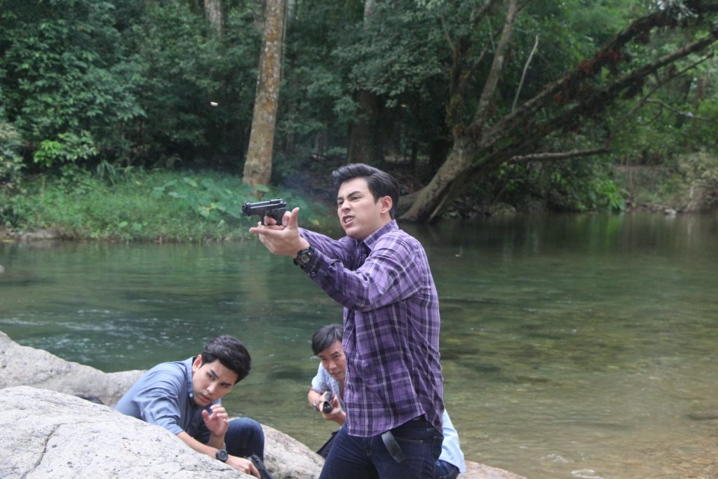 ฉากบู๊ฉากนี้เรียกได้ว่ามาครบทีม ครบเซ็ท อุปกรณ์ปืนมาเพียบ โดยทีมงานใช้โลเกชั่นน้ำตกตายาย จ.นครนายก เป็นสถานที่ถ่ายทำ โดยก่อนถ่ายทำจริง ทางทีมงานเซ็ทอุปกรณ์ปืน และขอซ้อมทีมนักแสดงและคิวปืนเพื่อความปลอดภัย