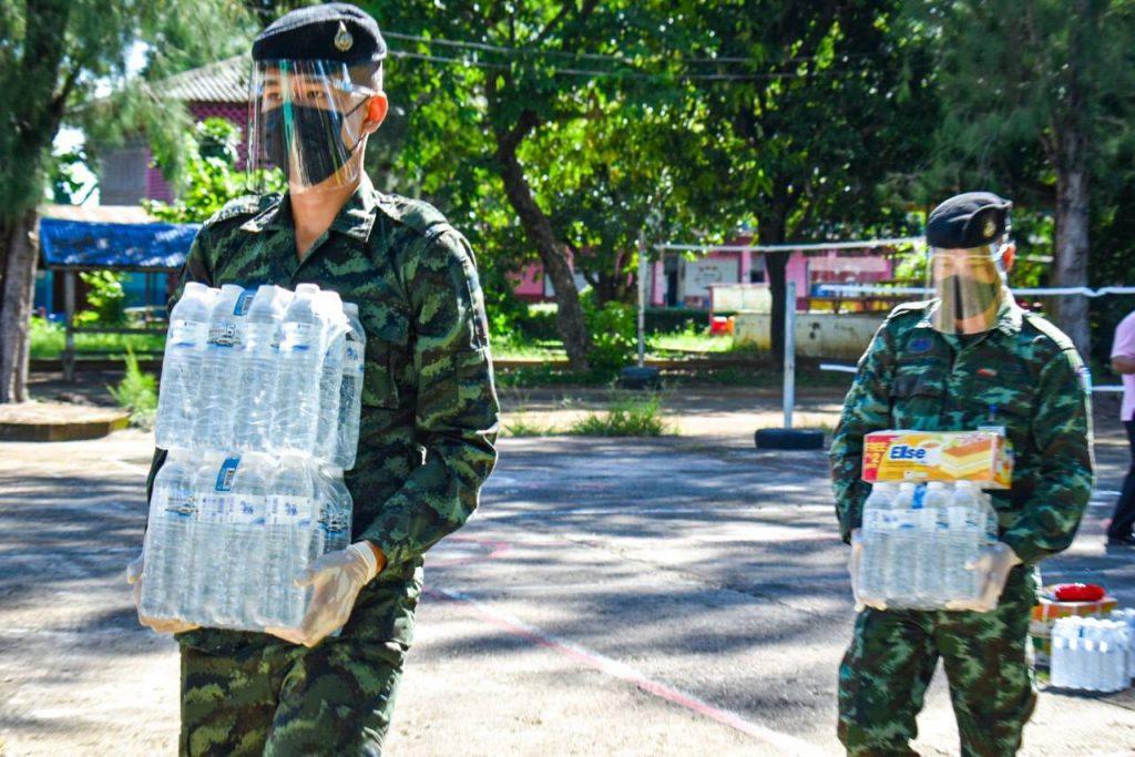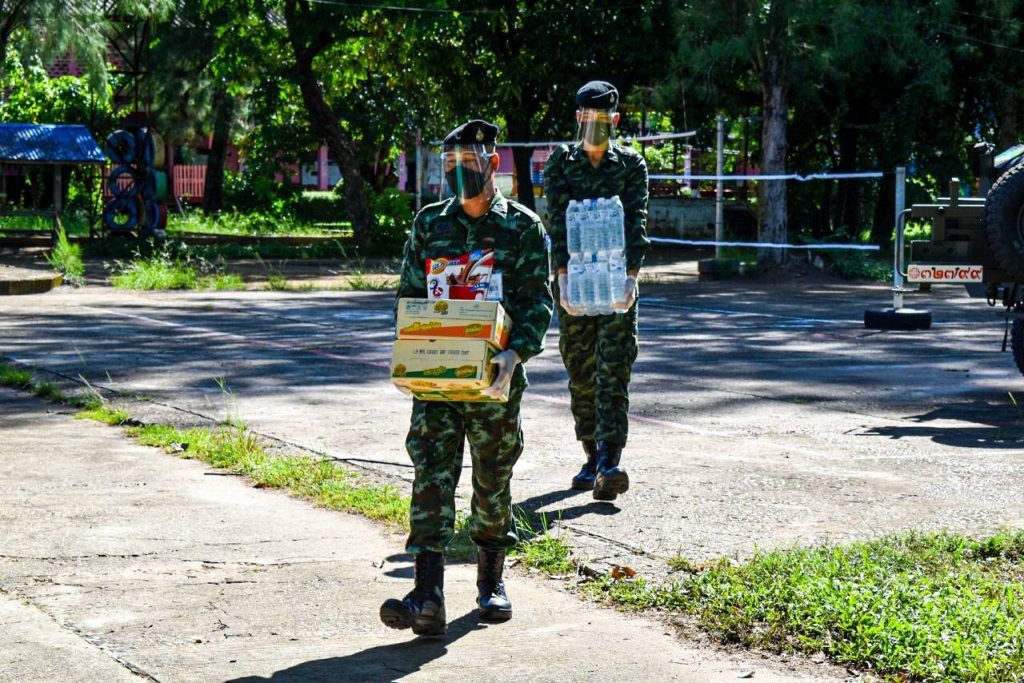 __ เมื่อวันที่ 17 สิงหาคม 2564 ที่โรงเรียนบ้านหาดแพง(หาดแพงวิทยา) ตำบลหาดแพง อำเภอศรีสงคราม จังหวัดนครพนม พันโท ศรณณัฐ นวลมณี ผู้บังคับกองพันทหารราบที่ 3 กรมทหารราบที่ 3 (ผบ.ร.3 พัน.3) สั่งการให้ชุดกิจการพลเรือนของหน่วยส่งมอบกำลังใจจากกองทัพบก เป็นสิ่งของอุปโภคบริโภคให้กับศูนย์แยกกักในชุมชน “ศูนย์พักคอย” Community Isolation อาคารตะเพียนทอง โรงเรียนบ้านหาดแพง (หาดแพงวิทยา) ให้กับผู้ป่วย COVID-19 ที่มีอาการหายป่วยแล้วและเข้ารับการแยกกักในชุมชน (community isolation) ปัจจุบันมีผู้เข้ารับการกักตัว จำนวน 8 ราย จึงจำเป็นต้องแยกตัวเองจากผู้อื่นเป็นเวลาอย่างน้อย 14 วัน นับตั้งแต่วันที่รักษาตัวหายเป็นปกติในโรงพยาบาล เพื่อเป็นการเฝ้าระวังและลดการแพร่เชื้อให้ผู้อื่น เพื่อระมัดระวังสุขอนามัยส่วนบุคคลต่อไปตามมาตรฐานวิถีใหม่ (new normal) เป็นการจัดระบบบริการ ด้านการแพทย์และสาธารณสุข ดูแลผู้ป่วย COVID-19 ในชุมชน เพื่อการวินิจฉัยเร็ว รักษาให้เร็ว ลดการเสียชีวิต และลดการแพร่ระบาดของโรคในชุมชน ครอบคลุมทั้งในส่วนของสุขภาพทางกายและสุขภาพทางใจ รวมถึงสุขาภิบาลสิ่งแวดล้อมในส่วนบุคคล และส่วนรวม เป็นอีกทางเลือกหนึ่งในการรักษาผู้ป่วยและลดการแพร่ระบาดในชุมชน จากมาตรการคุมเข้มของศูนย์บริหารสถานการณ์แพร่ระบาดของโรคติดเชื้อไวรัสโคโรนา 2019 (ศบค.)โดยศูนย์แยกกักในชุมชน “ศูนย์พักคอย” Community Isolation อาคารตะเพียนทองโรงเรียนบ้านหาดแพง(หาดแพงวิทยา) อยู่ในความดูแลของ สำนักงานสาธารณสุขอำเภอศรีสงคราม จังหวัดนครพนม โดยมีมติคณะกรรมการควบคุมโรคติดต่อจังหวัดนครพนม ให้กระจายจัดตั้งในทุกๆอำเภอในจังหวัดนครพนม เพื่อรองรับผู้ป่วยที่หายแล้ว ทั้งนี้กองพันทหารราบที่ 3 กรมทหารราบที่ 3 ปฏิบัติตามมาตรการควบคุมโรคอย่างเคร่งครัดและเป็นไปตามนโยบายของกองทัพบก ในการให้การสนับสนุนหน่วยงานที่เกี่ยวข้องในการป้องกับการแพร่ระบาดของไวรัส Covid-19 อย่างเต็มขีดความสามารถ โดยอยู่ภายใต้มาตรการป้องกันโควิด-19 อย่างเคร่งครัด