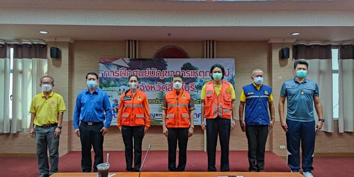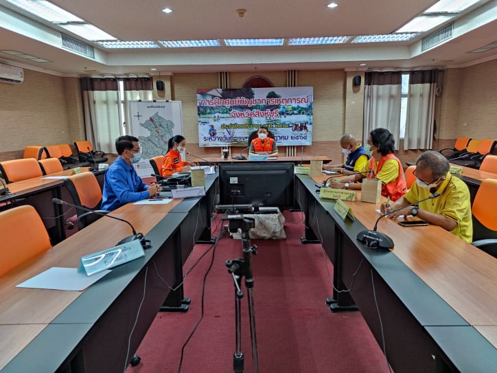 นายนัฐพล ธานีรัตน์ รองผู้ว่าราชการจังหวัดสิงห์บุรี เป็นประธานในการฝึกศูนย์บัญชาการเหตุการณ์จังหวัดสิงห์บุรี ปี 2564 กรณีอุทกภัย น้ำล้นตลิ่ง โดยมี นางสาวนงเยาว์ เทพศิริ หัวหน้าสำนักงาน ป้องกันและบรรเทาสาธารณภัยจังหวัดสิงห์บุรี ศูนย์ ปภ.เขต 16 ชัยนาท ปลัดจังหวัดสิงห์บุรี หัวหน้าส่วนราชการ องค์กรปกครองส่วนท้องถิ่น ตำรวจ และเจ้าหน้าที่ผู้เกี่ยวข้องเข้าร่วม ฝึกซ้อมวางแผนบนโต๊ะ (Table Top Exercise) แบ่งกลุ่ม 5 คน ผ่านระบบประชุมทางไกล ณ ห้องประชุมชั้น 3 ศาลกลางจังหวัดสิงห์บุรี ได้ฝึกซ้อมจำลองเหตุการณ์น้ำในแม่น้ำเจ้าพระยาล้นตลิ่งเข้าท่วมบ้านเรือนของประชาชนในพื้นที่จังหวัดสิงห์บุรี เพื่อเตรียมความพร้อมรับมือสถานการณ์อุทกภัยในช่วงฤดูฝน ปี 2564